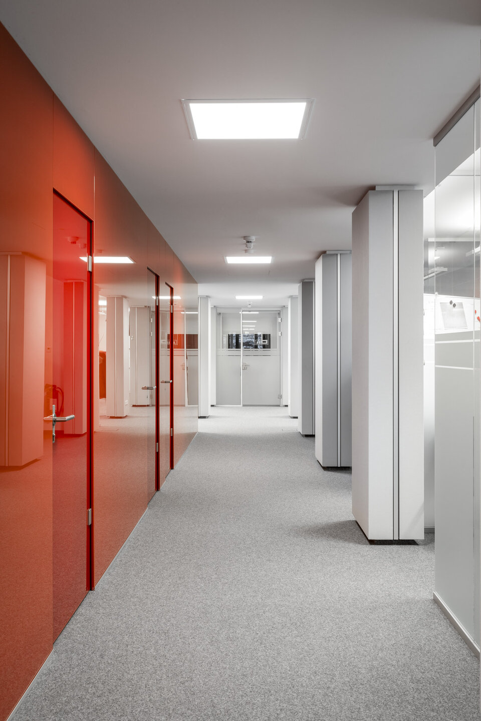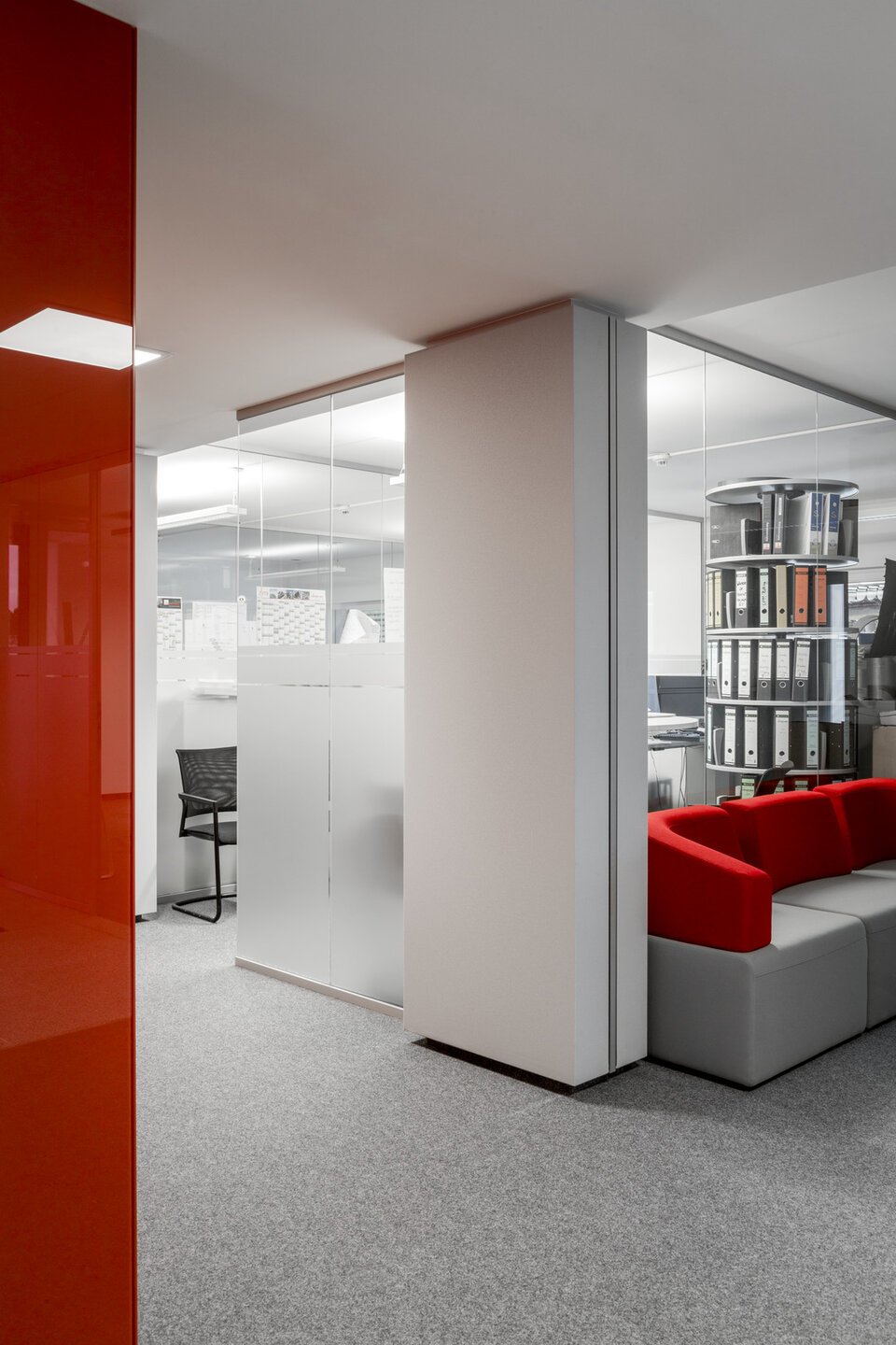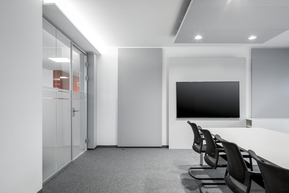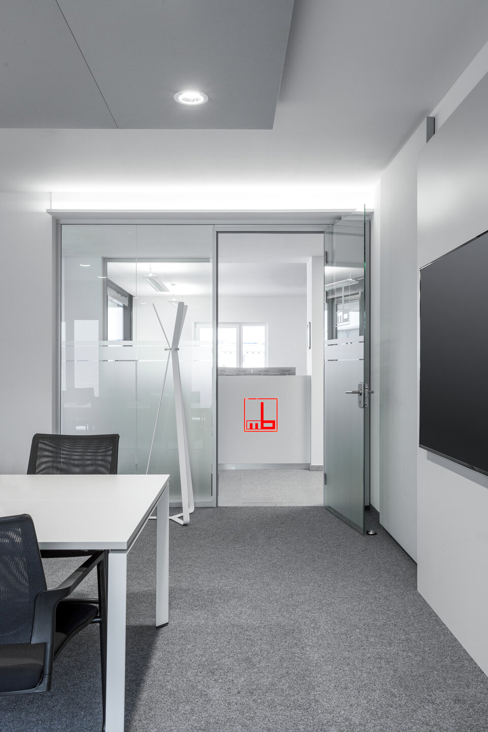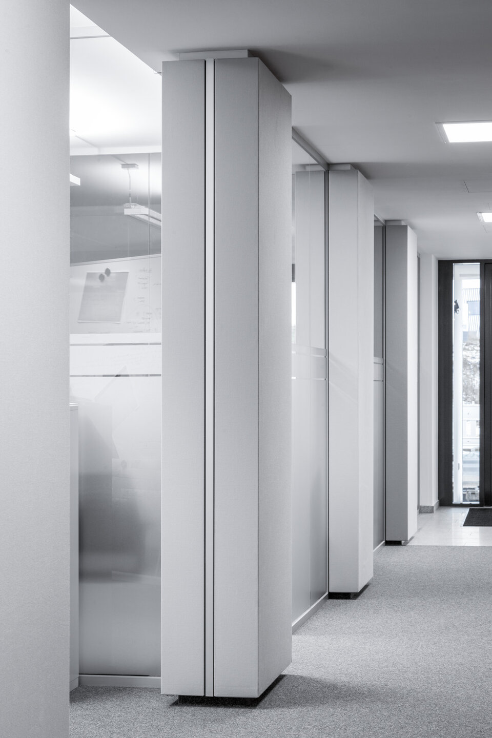 From the Deining location, Max Bögl Verkehrstechnik GmbH coordinates its activities on Germany's roads. To expand capacity, a new office building was created. Lindner contributed to the interior design of the office space with Lindner Life Pure 620 glass partitions with integrated fully-glazed doors and sound absorbers. These products achieve zoning of the office environment and the separation of meeting rooms. At the same time, sound absorbers improve the acoustic quality of the room by attaching to columns as well as reverberant walls and ceilings. The ceilings were cladded with fabric-covered canopy ceilings, while compact broadband absorbers with fabric cover were chosen for the walls.