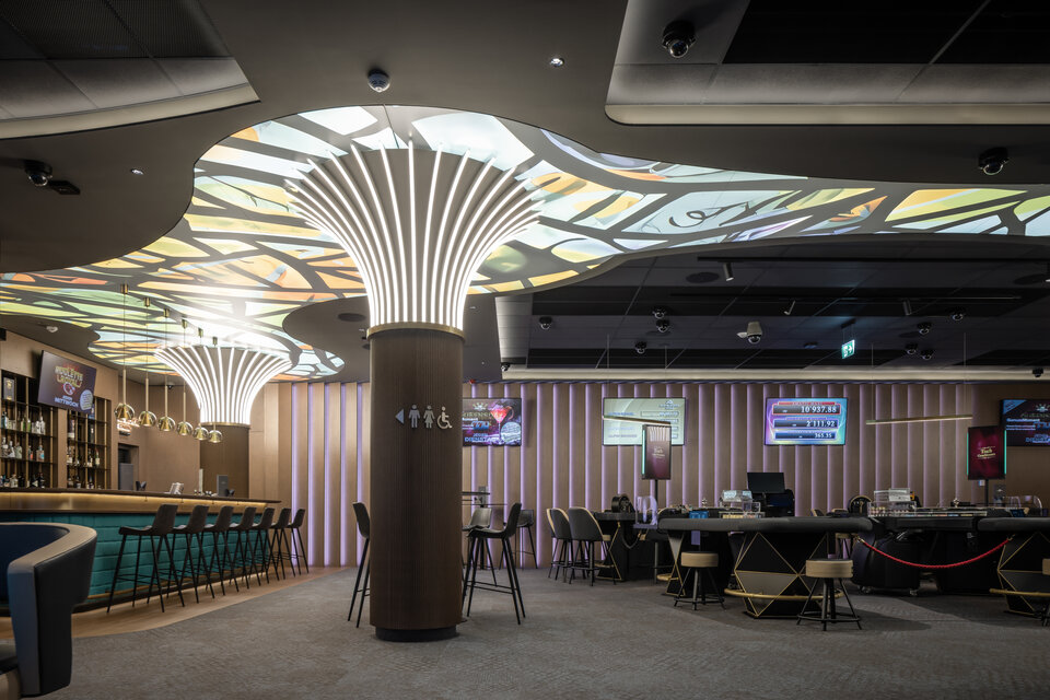 With the Alpin Royal Casino, the long-established Castle Casino celebrates its comeback following its relocation to Schaan, Liechtenstein. The new building elegantly combines gaming, indulgence, and hospitality: two bars, an upscale restaurant, and a hotel with 29 rooms and 5 suites create a stylish all-round experience for guests from the region and beyond. The spacious gaming area extends across two floors, offering both slot machines and classic live games. With its opening, the Alpin Royal Casino becomes one of the five licensed casinos in Liechtenstein and sets new standards in the entertainment sector with its modern design.
