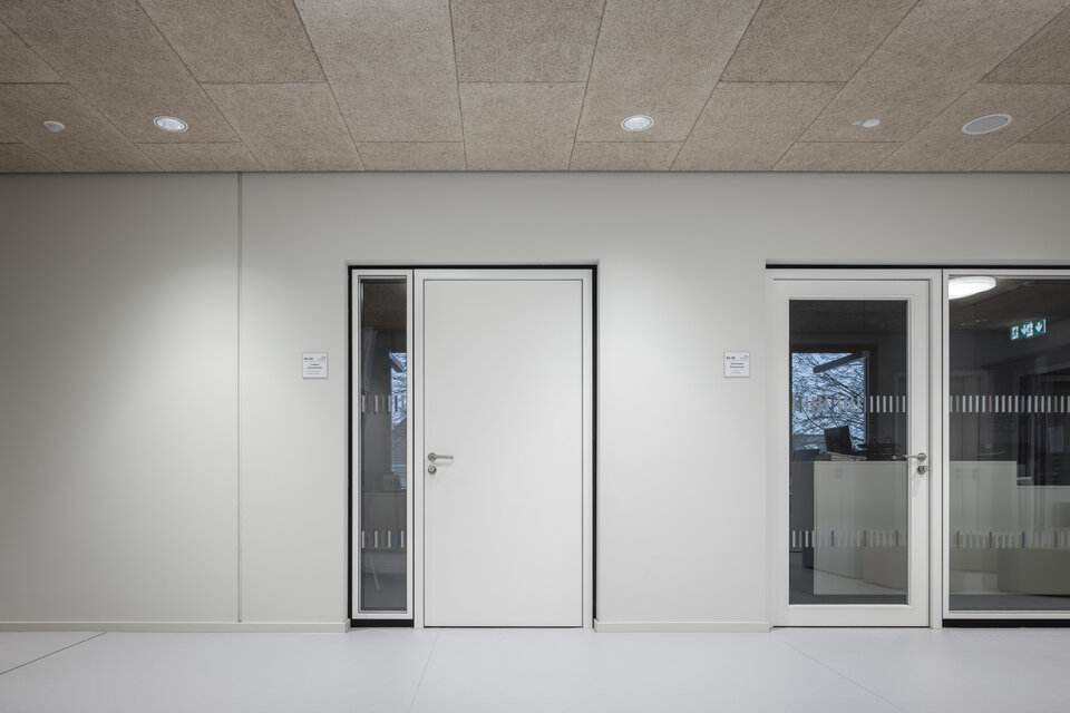 HTB 68 timber doors were used in both standard areas and fire-rated zones. Glazed inserts enhance visual connections in corridors, learning, and functional areas, supporting orientation within the building. In addition, HTB 41 T0 timber doors were installed, maintaining the calm material character of the interiors.