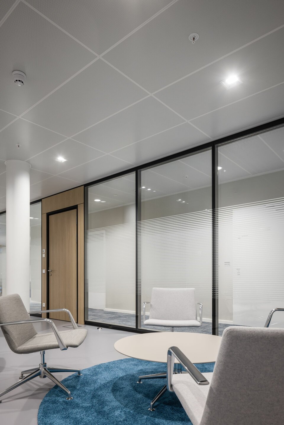 Lindner played a key role in the office fit-out of the Company and installed a number of system products from its own production. These include numerous elegant solutions such as the Lindner Life Freeze glass partitions, which skilfully combine aesthetics and functionality. The Lindner Logic 100 Timber partitions act as a visual counterpart with their real wood surface. To guarantee a pleasant and smooth air exchange in the rooms, Lindner Plus overflow elements have been integrated into the partition wall systems. The Lindner Group also installed a range of doors, including glass doors as well as wooden doors, which exceed the high sound insulation requirements. Lindner also provided a stable subfloor in the office areas with the LIGNA raised floor and the FLOOR and more® hollow floor. The so-called "Think Tanks" are a special highlight: Consisting of various Lindner glazings, these create a retreat for short meetings and creative work.