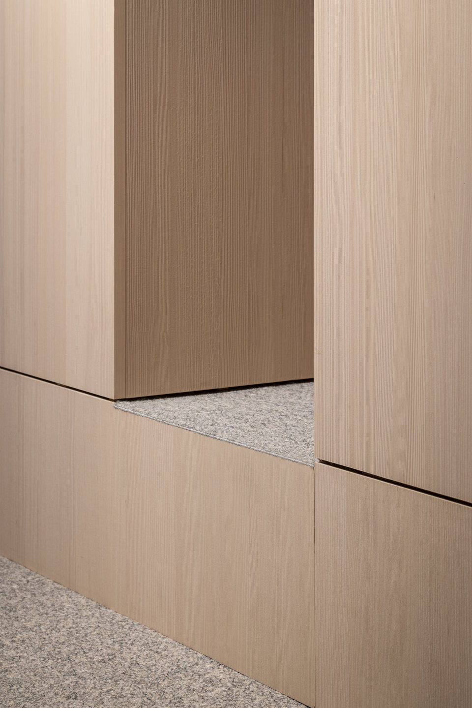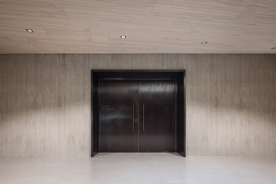 Inside, the high standards of quality and design are particularly evident in the new council chamber. Here, Lindner, with its Interior Fit-out and Furnishings as well as its Floor systems division, played a key role in the interior fit-out. The work included all joinery services – from wall and ceiling claddings, the impressive entrance door with brass fittings and floor coverings to bespoke tables and chairs. The result is a representative space that convinces with clean lines, refined materials and well-considered functionality.