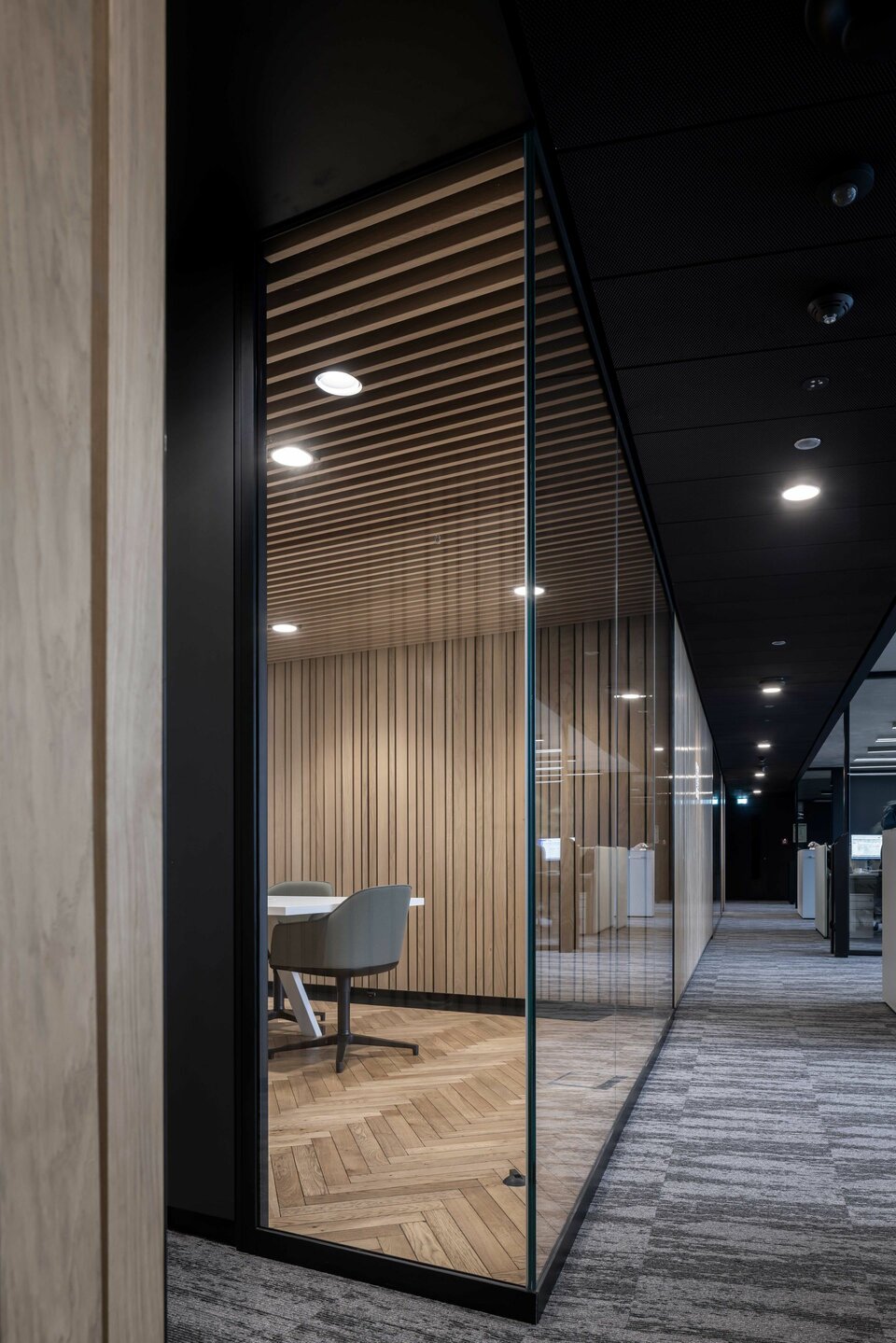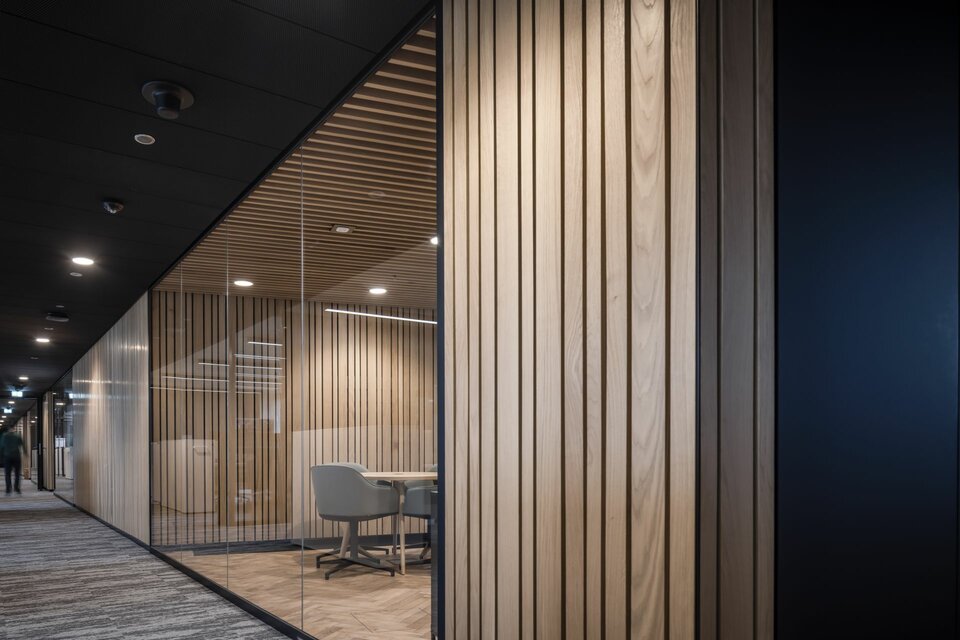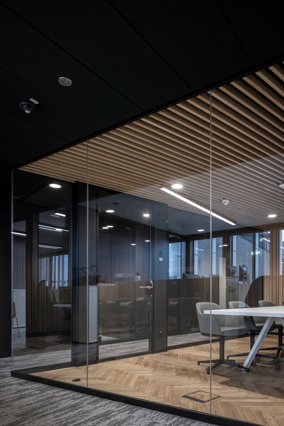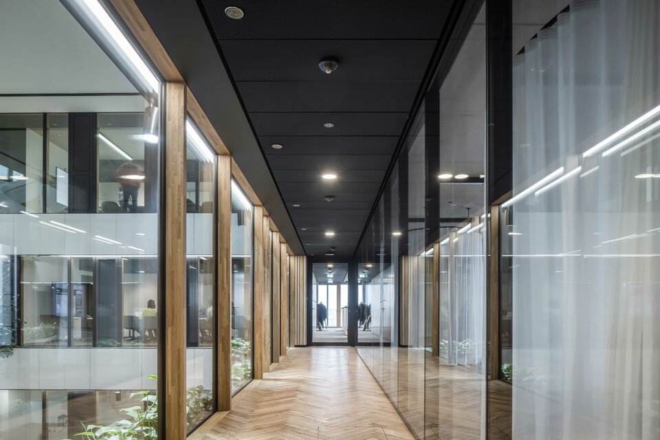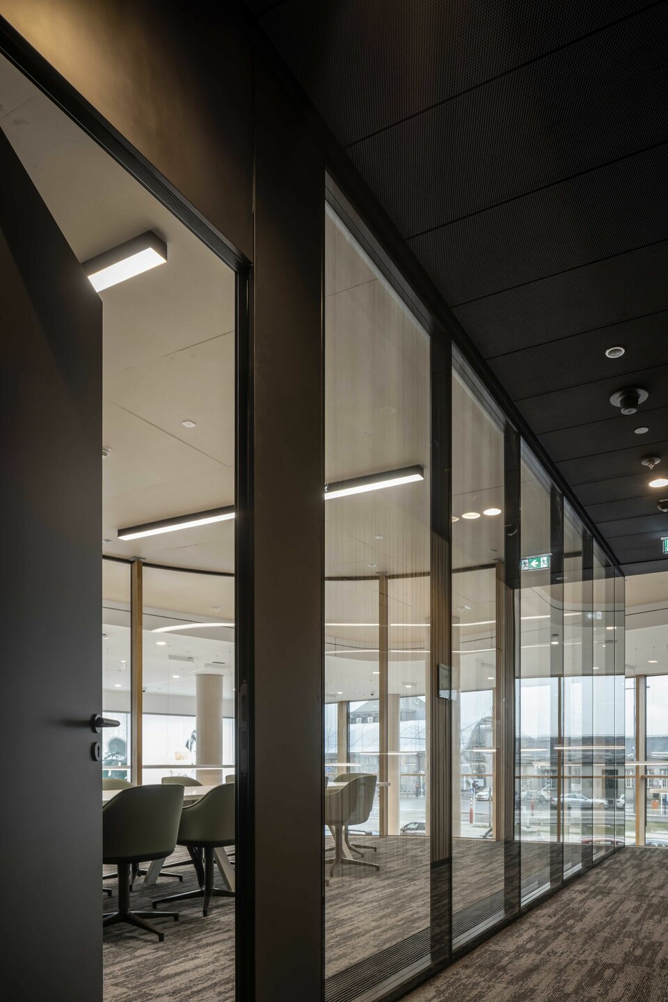 The interior fit-out of the POST Headquarters is the largest contract to date for the Lindner Group in Luxembourg. Lindner installed the FLOOR and more®, FLOOR and more® comfort and NORTEC hollow and raised floor systems with modern carpeting. The glass partitions Lindner Life Freeze 137, Lindner Life Pure 620 and Lindner Life Stereo 225 as fire protection glazing in EI60 provide an elegant separation of the offices. The wooden partition wall Lindner Logic Timber with long-lasting varnish, on the other hand, acts as an antagonist to the transparent glass elements. Perfectly matched to the partition walls, the associated doors were also made of wood or glass.