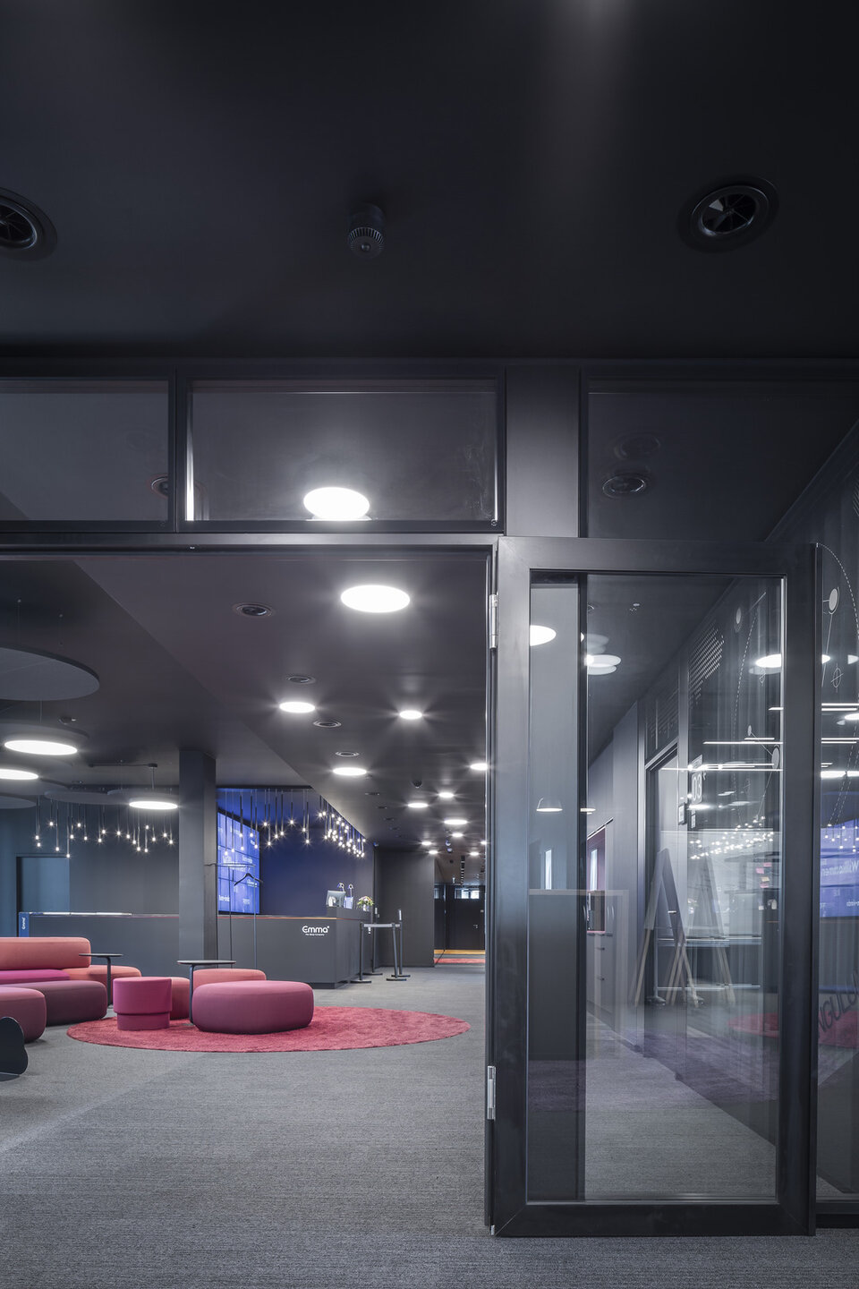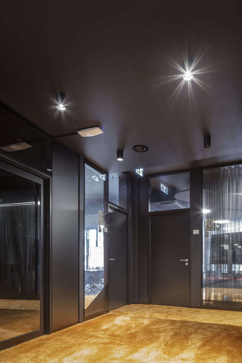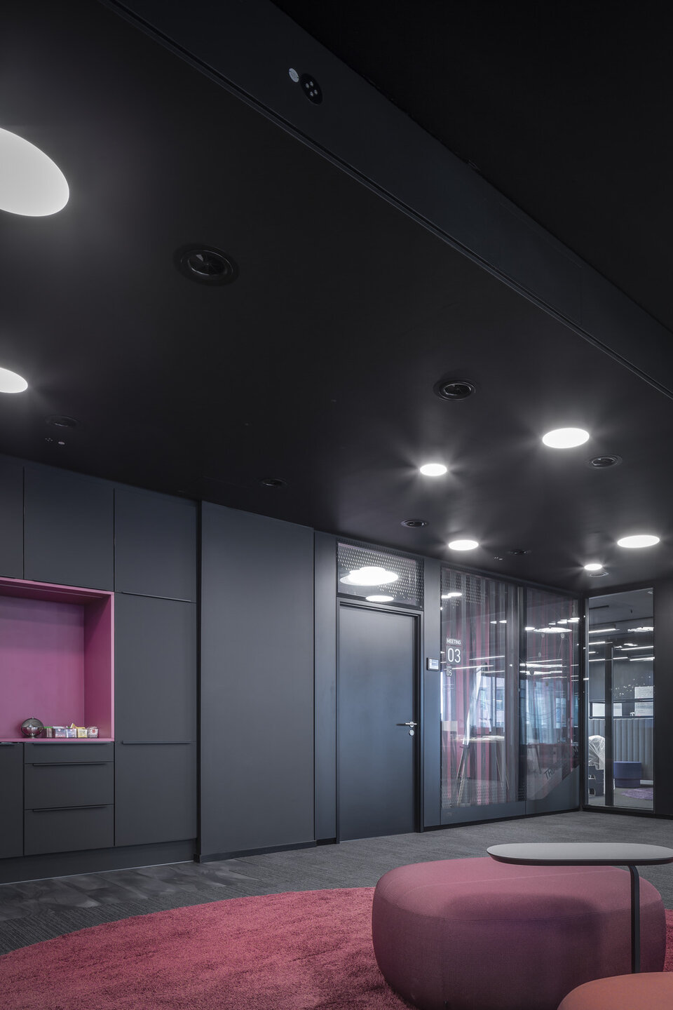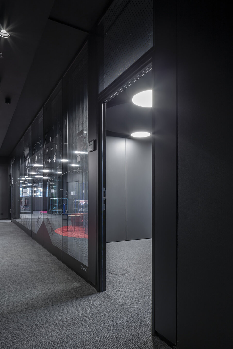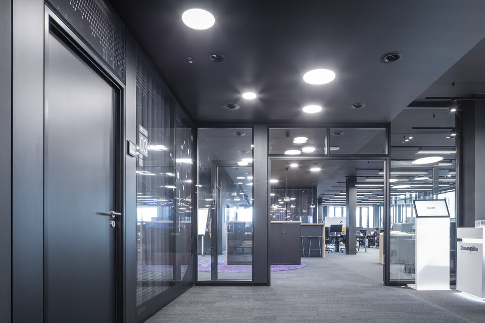 As early as 2002, Lindner was awarded the overall contract for the interior fit-out on 6 floors of the Baseler Platz office and residential complex. These were fitted with glass partitions and 3 m high special corridor door elements - cross veneered in cherry with side panels. Lindner also carried out the raised floor system. Following this order, several customised tenant fit-outs in the form of additional glass partitions, door elements and interior fit-outs were realised. In 2019, after several changes of tenants, the order for the revitalisation followed: In addition to the dismantling and conversion, this also included the new delivery of glass partitions and doors for floors 4 to 6. Black-powdered glass partitions and door systems with side panels were also supplied specifically for the main tenant "Bettzeit". Lindner also carried out all conversion work in the raised floor area. In spring 2020, another follow-up order was received for the tenant fit-out for Deutsche Bahn on floors 1 and 2.