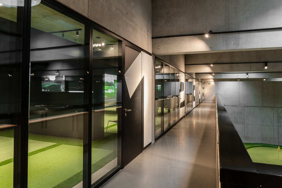 Fire-tested HTB 68 wooden doors lead to a modern fitness area. In the office spaces, HTB 41 wooden doors were chosen as well. High-speed doors provide a secure connection to the free golf areas, ensuring seamless integration between indoor and outdoor spaces.
