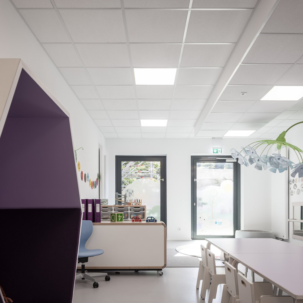 In this connection, an environmentally friendly and energy efficient heating system was installed, which dispenses its heat output into the rooms via Plafotherm® Plasterboard Heated and Chilled Cheilings: class rooms, handicraft class rooms, lunchtime child-care facilities, physics and IT class rooms, school kitchen and hallways are tempered in this way.