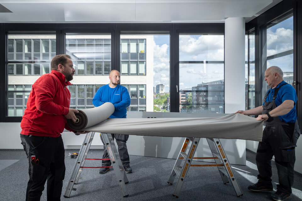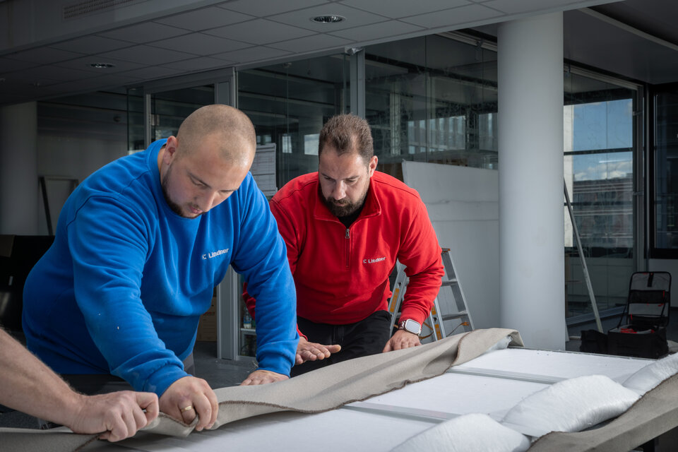 As part of a current tenant fit-out at Fleet Office II in Hamburg, the Lindner Group is making a strong statement for sustainable construction: acoustic wall absorbers, originally installed in 2017, are being visually refurbished and integrated into the new usage concept.