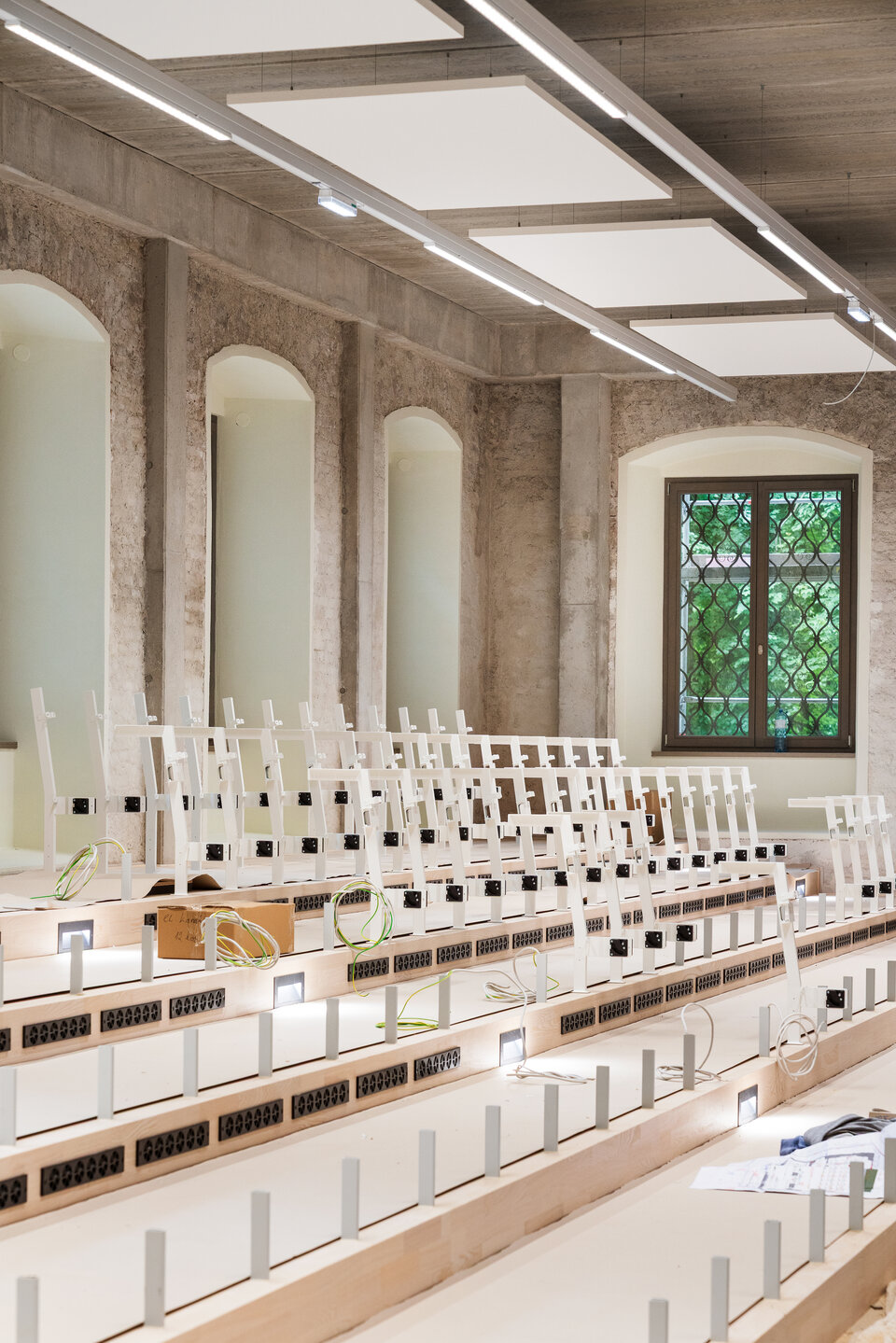 The goal of this revitalization project was to create an inspiring environment for research, cooperation, and knowledge sharing, enriching both the university’s infrastructure and the educational landscape of the city. The building’s impressive vaulted ceilings have been preserved in their original form and enhanced with durable, eco-friendly materials, blending historical character with contemporary functionality.