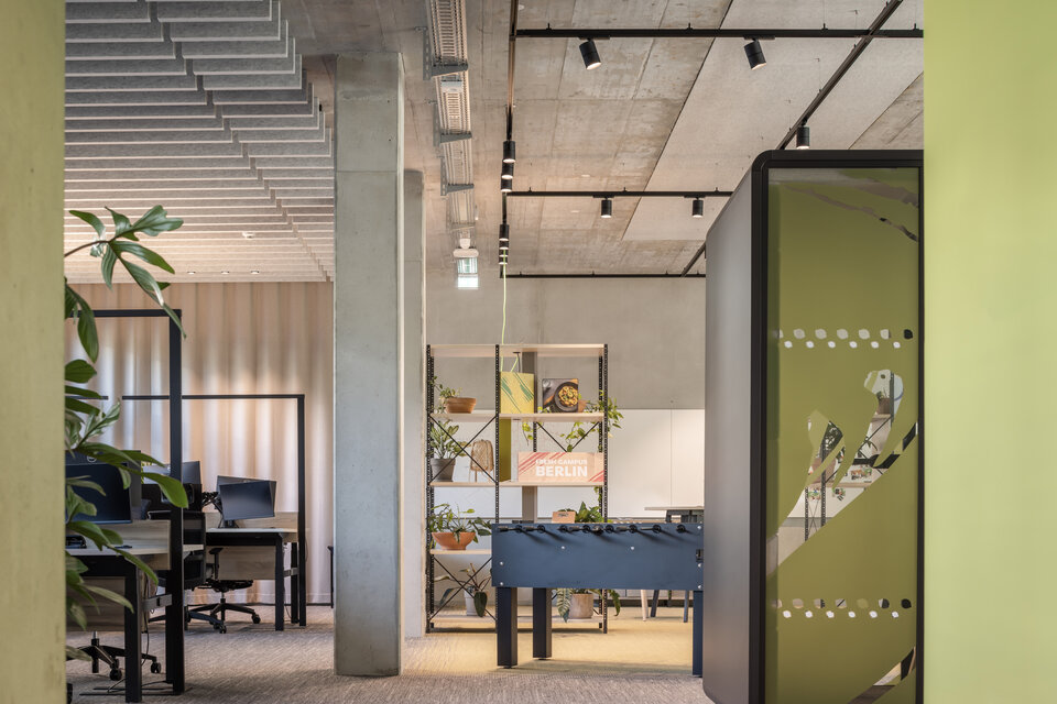 A modern office, administration and commercial building was built at Ritterstraße 16-18, in the middle of Berlin's famous Rollkutschenviertel. Due to the high density of companies and manufacturing businesses, the location is perfect for all established as well as up-and-coming companies – such as HelloFresh, that moved into the building complex as a tenant. The colour concept of the innovative food supplier is also reflected in the premises: The office worlds shine in fresh yellow, green and pink.