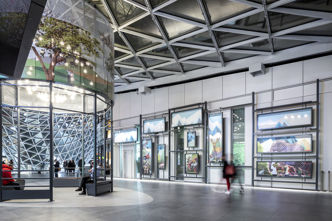 The spectacular MyZeil shopping centre in Frankfurt am Main, Germany is located next to Zeil, a well-known shopping street. On the fourth floor of the centre, the operator ECE Hamburg implemented a new gastronomy and entertainment concept called "Foodtopia" as part of the renovation of the building: In different areas, guests can enjoy a wide variety of culinary highlights and the spectacular view of the Frankfurt skyline. The urban flair and the lively atmosphere of a market hall contribute significantly to the special ambience.