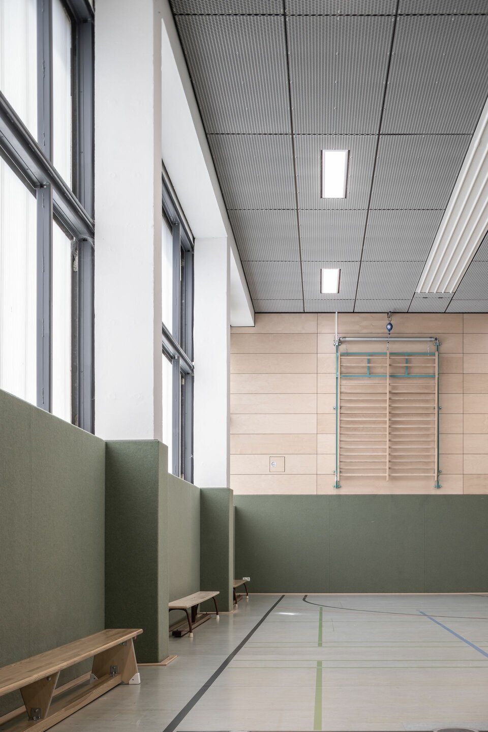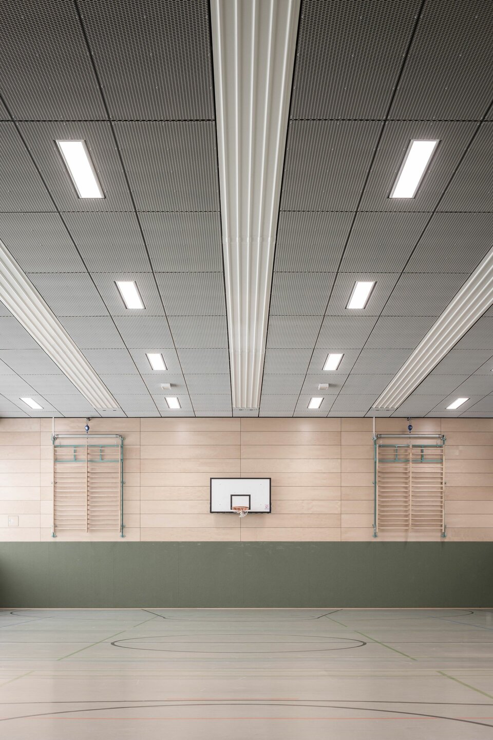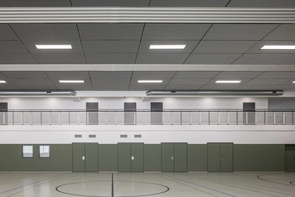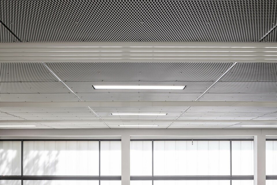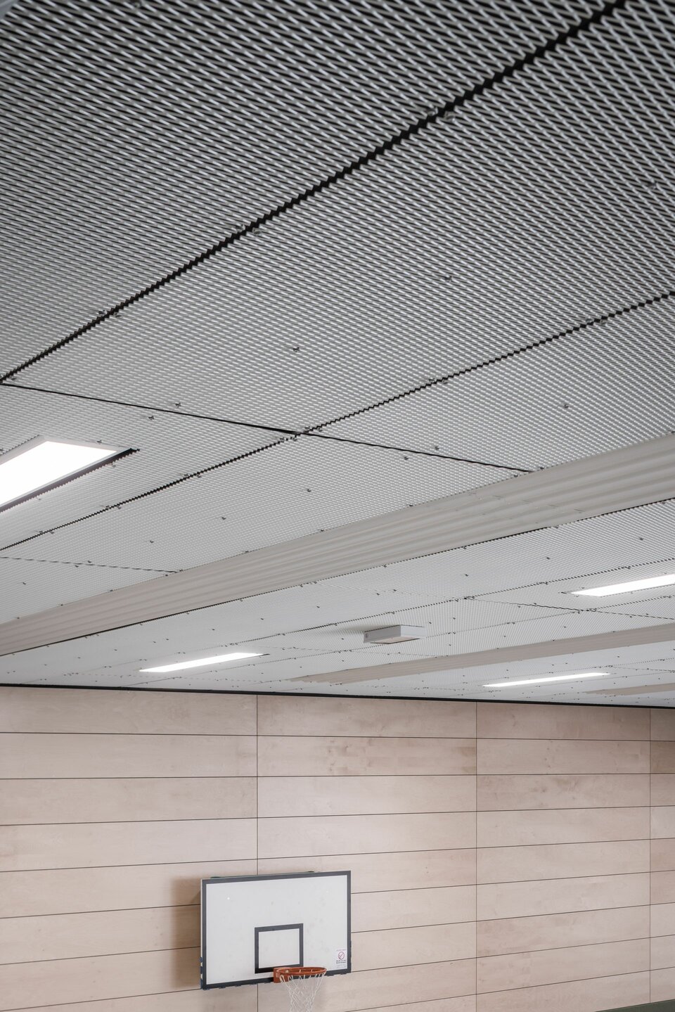 The Lindner Group equipped both sports facilities with a ball-impact resistant ceiling construction: The LMD-St 213 BWS expanded metal ceiling is fixed with hold-downs and thus achieves the desired ball impact safety class. The concealed substructure creates a homogeneous ceiling surface that is as simple and elegant as it is safe.