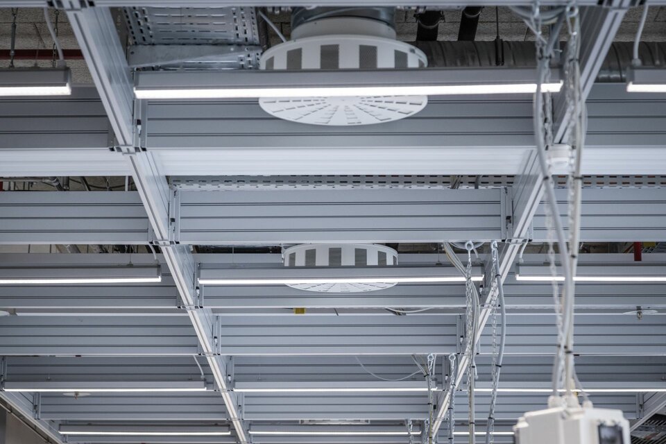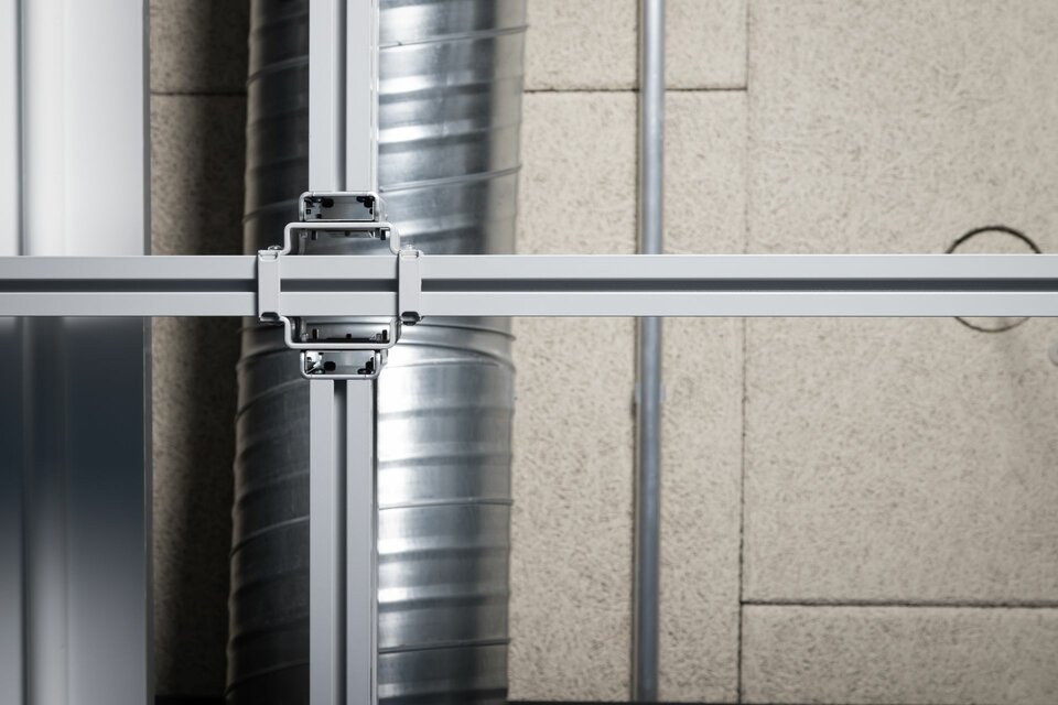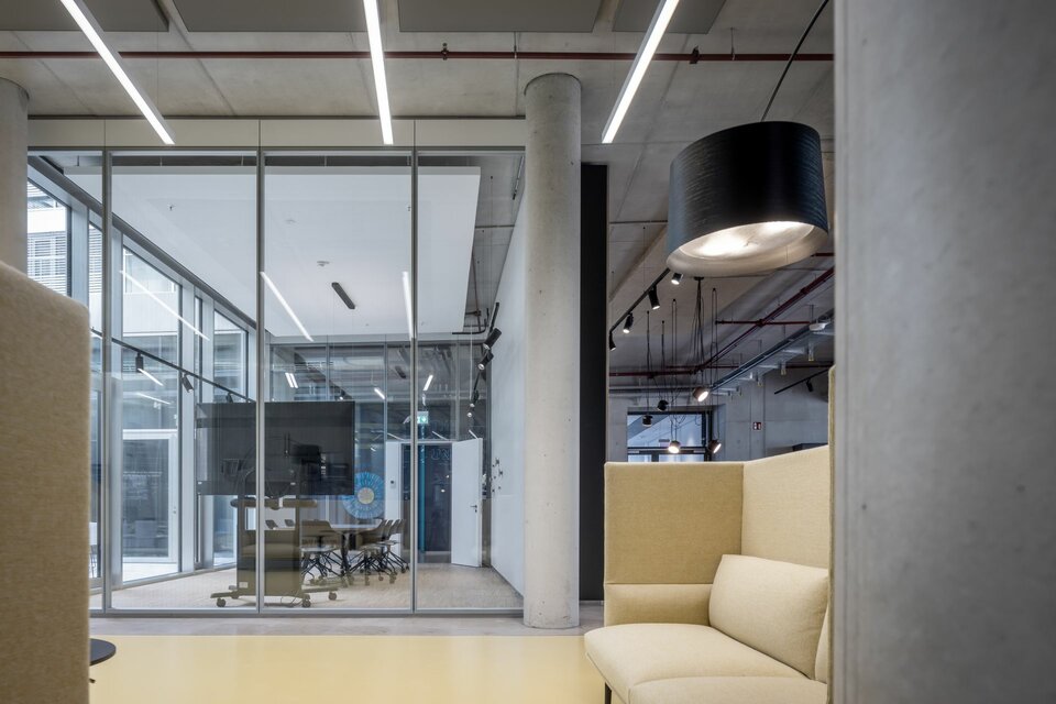 In order to achieve maximum flexibility in room design and technical equipment, the Lindner Click & Load installation grid was chosen as a suspension system for lights, mobile power outlets, and building services. The patented support system made of lightweight aluminium profiles can be flexibly adjusted and easily installed with little effort, while simultaneously boasting high load-bearing capacities. Click & Load can also be easily combined with other room partition systems, such as the Lindner Life Freeze and Life Pure glass partition walls in 3.50 m full height versions, combined with glass and wooden doors as well as further solid wall systems from Lindner.