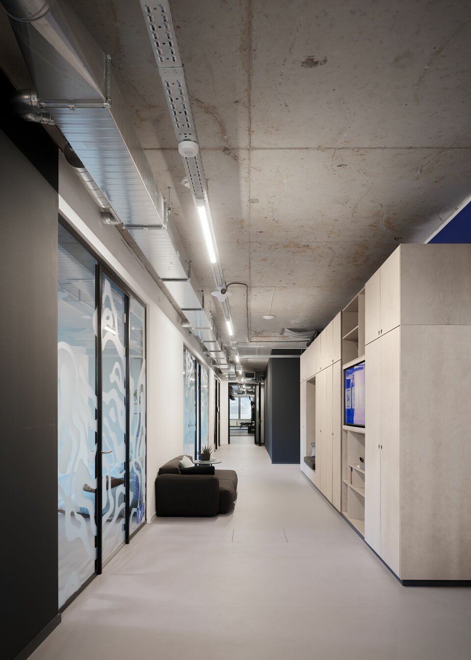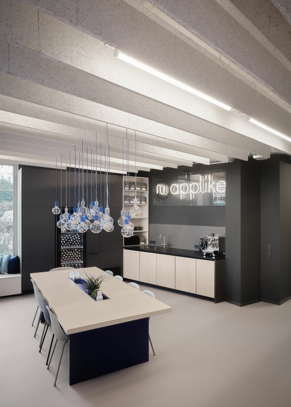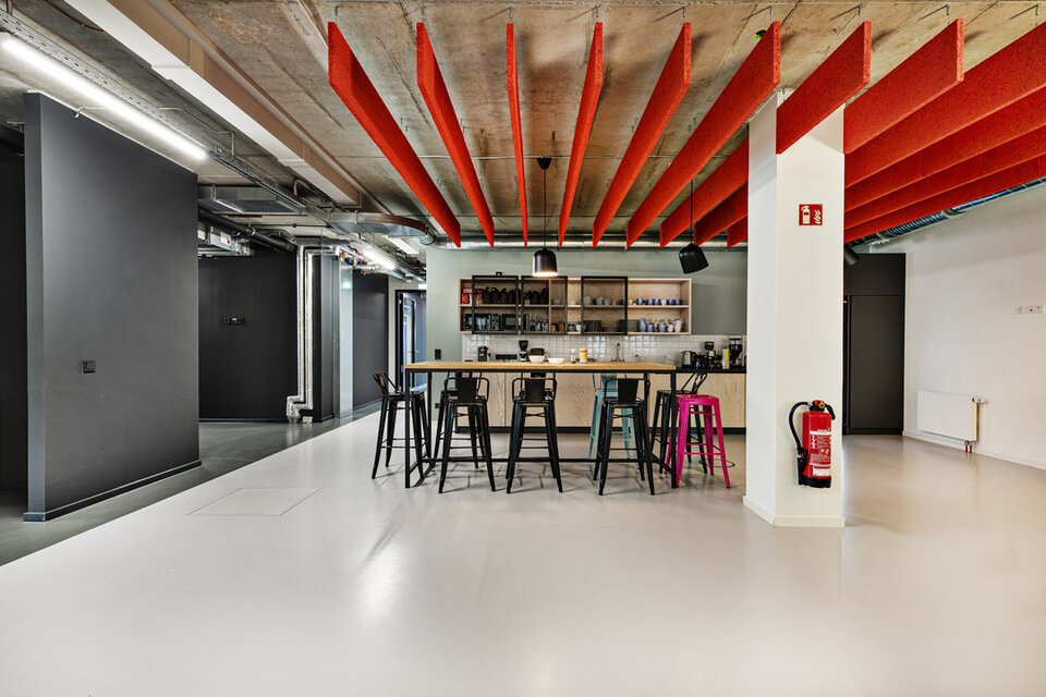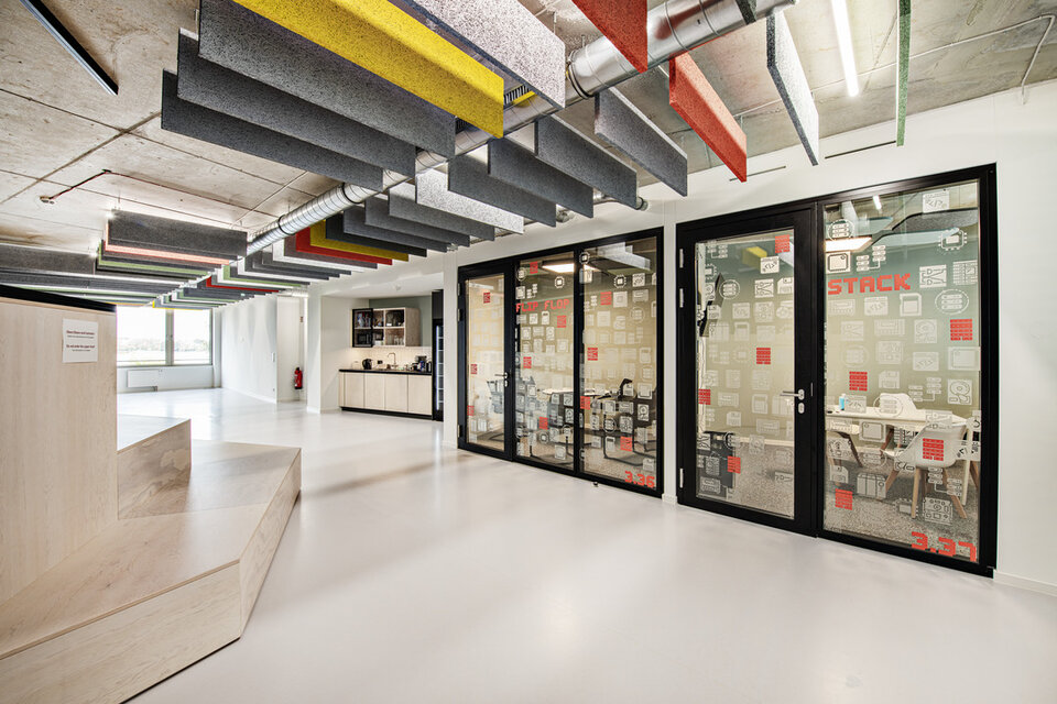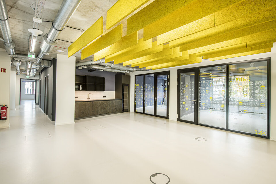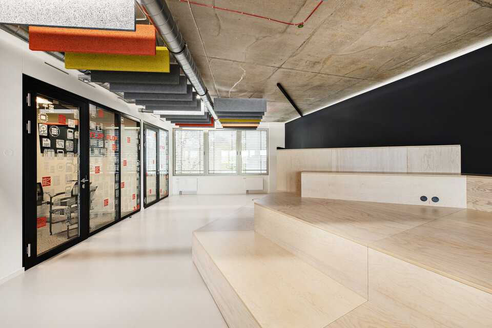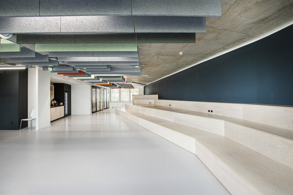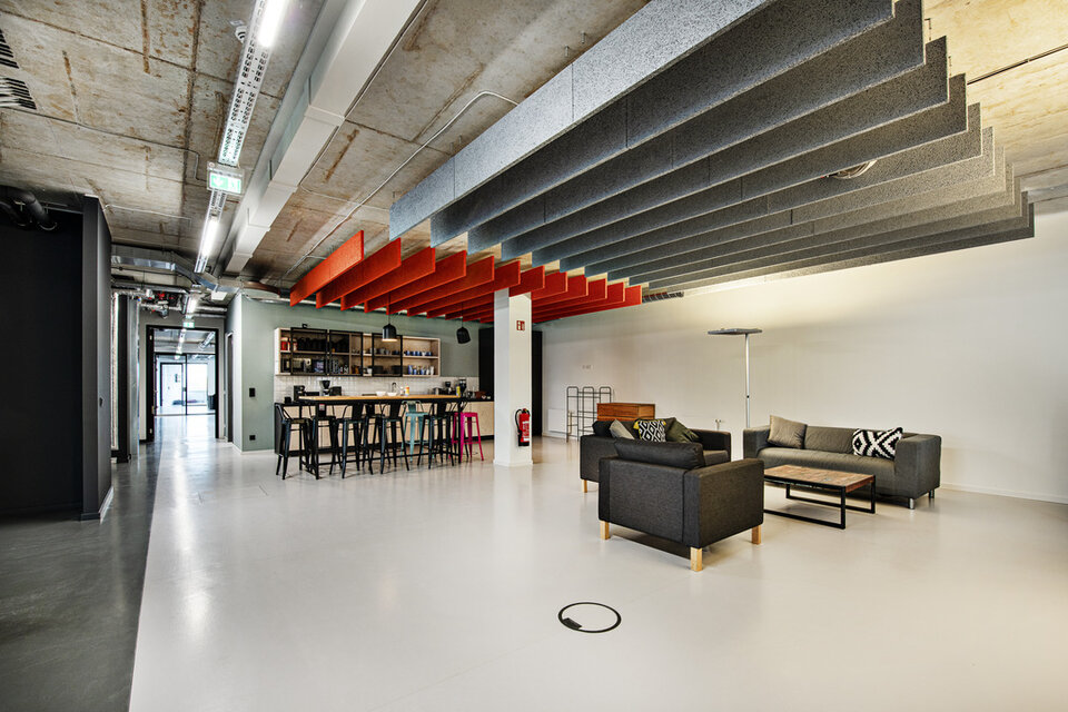 The premises of software developer AppLike extend over 3,000 m2 in an industrial style on Hamburg's Alster lake. Planned by BAID Architektur, Lindner was responsible for the complete fit-out of the three floors and carried out extensive acoustic simulations prior to the construction work.