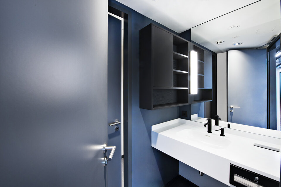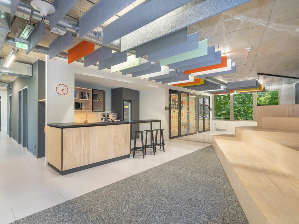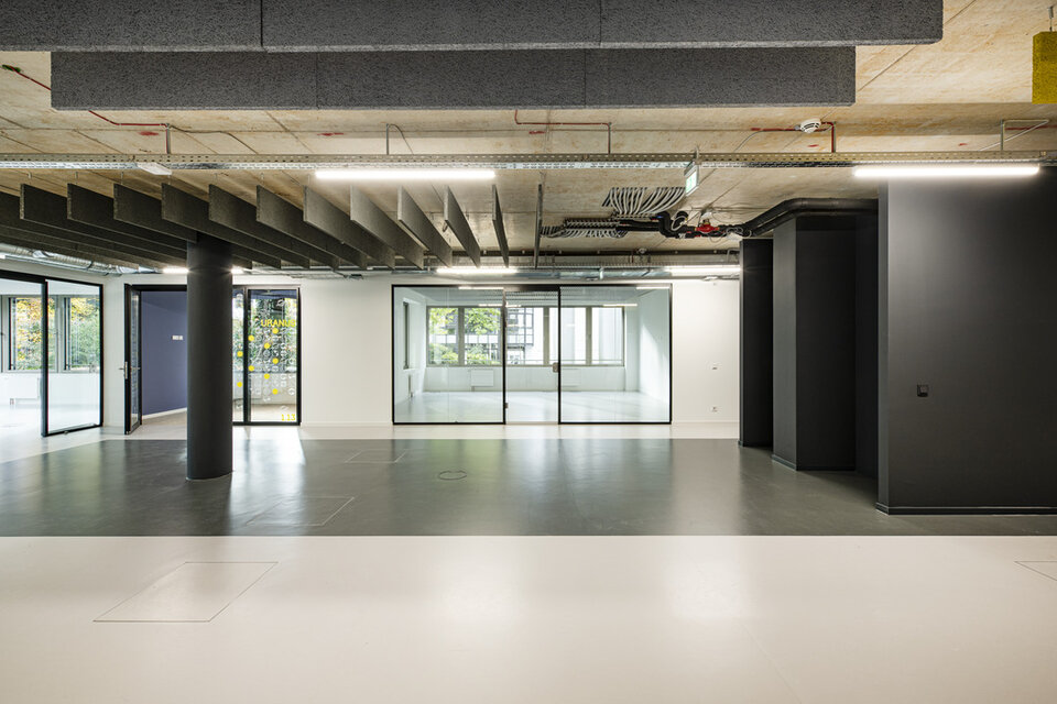 In addition to the contract for the complete fit-out, Lindner's Tenant Fit-out – Design & Build department was also awarded the follow-up contract for the tenant fit-out of the ground floor in 2022. Based on the plans of BAID Architecture, modern office environments were created here – individually tailored to the start-up's way of working. The functional and open-plan design of the office space now allows for both quiet and collaborative working. As the tenant fit-out took place while the floors above were in use, special consideration had to be given to noise and circulation.