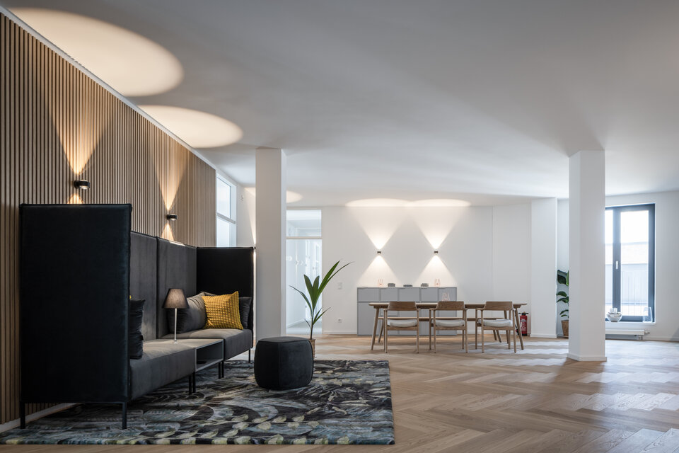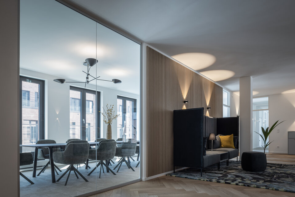 The project was carried out under particularly tight time constraints: time-critical trades such as doors and partition systems had to be coordinated and delivered on schedule, despite industry-wide supply bottlenecks. Despite the compressed timeline and logistical challenges, the Lindner Group successfully completed all fit-out work within the required timeframe while maintaining the highest standards of workmanship.
