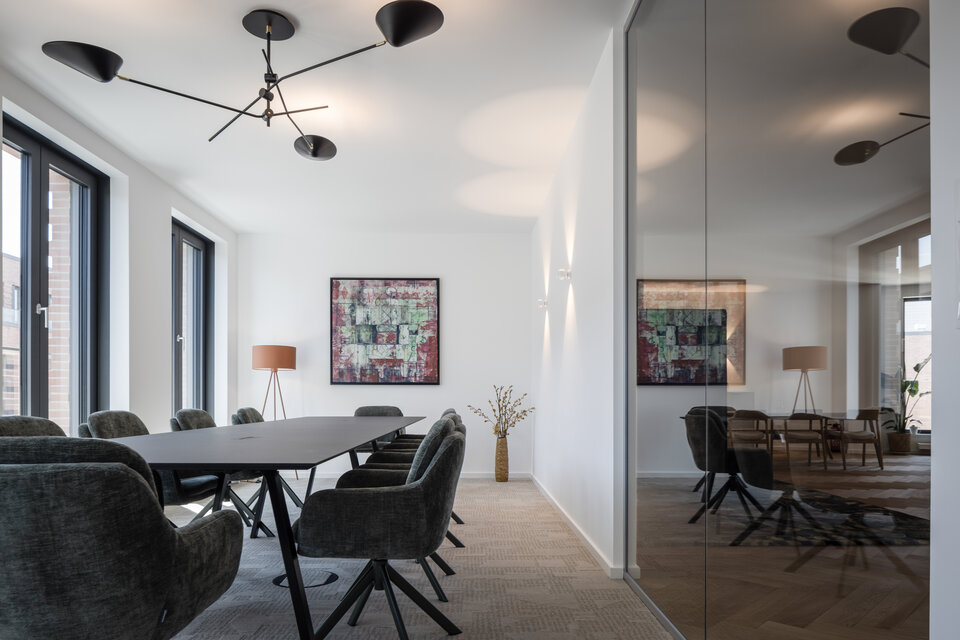 In Monheim am Rhein, a commercial rental space within an existing property was fitted out for the Blankbau Group – an experienced project developer, property developer, and asset manager based in the western Ruhr region. The objective was to create a modern working environment that blends thoughtful functionality with strong design – flexible in use, efficiently organised, and tailored to the demands of a dynamic workday.