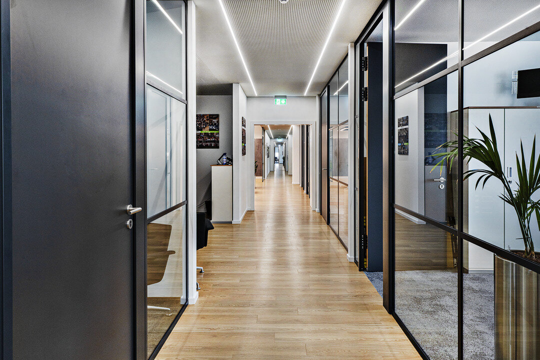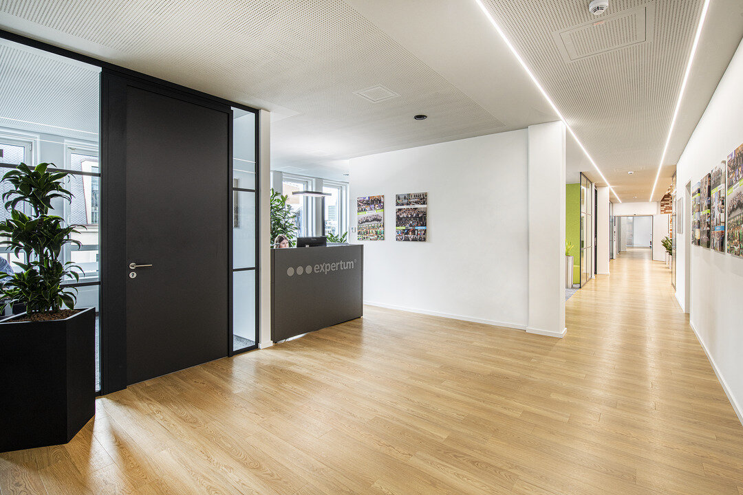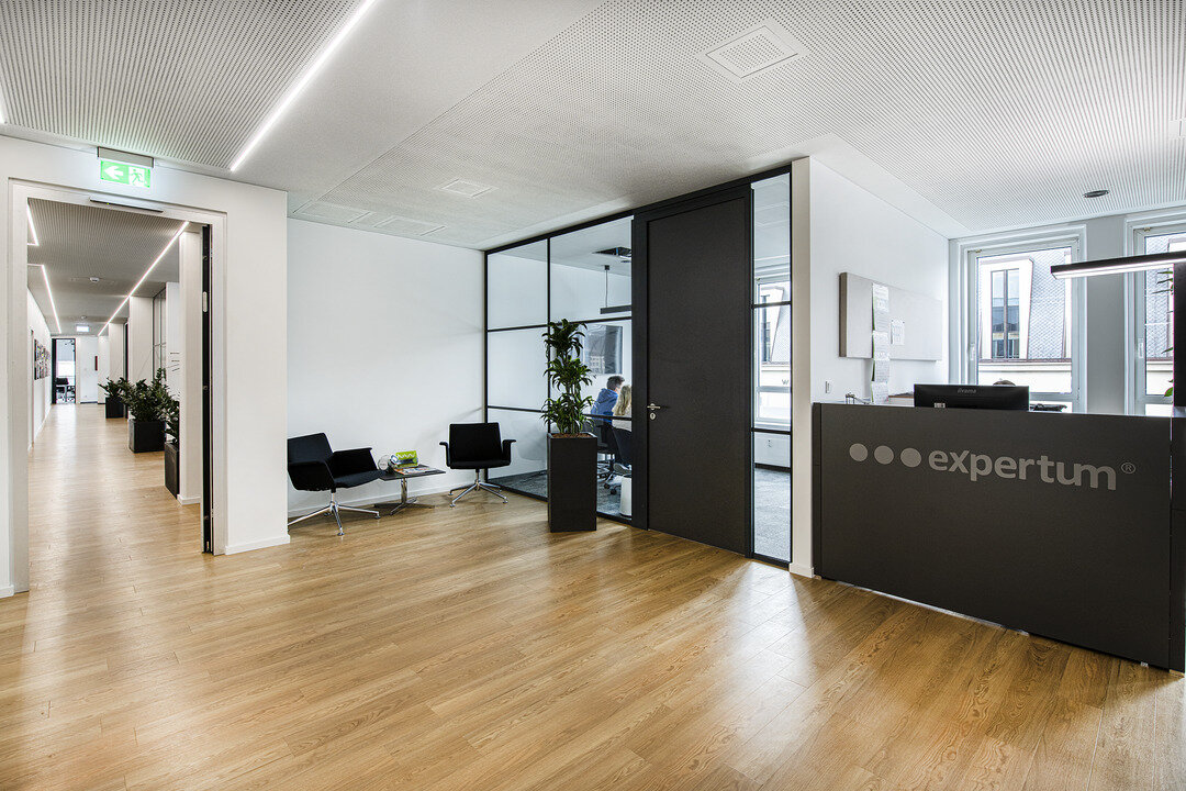 Lindner was responsible for the tenant fit-out including implementation planning. In keeping with the Expertum Group's slogan "From industry. For industry", the rooms appear in the latest industrial style: Lindner Life Industrial partition systems separate the individual offices from each other and ensure a modern look. Various Lindner luminaires skilfully highlight the rooms, while drywall work and matching doors round off the modern look of the working environments. The fit-out package was supplemented by various painting and carpentry works.