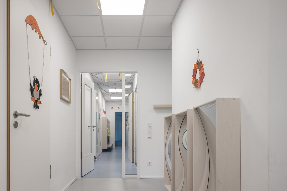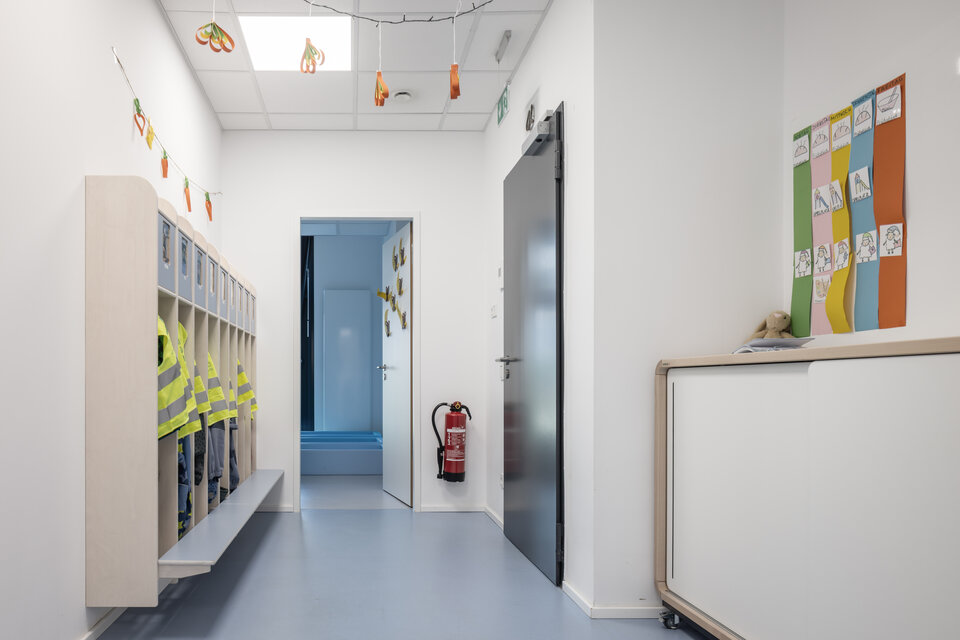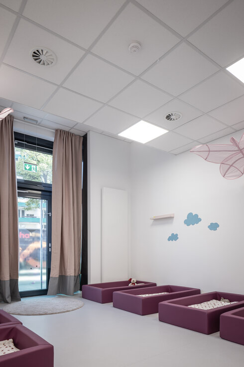 The facility was also fitted out with state-of-the-art technical systems. The building services engineering (TGA) was designed and implemented to be efficient, sustainable, and low-maintenance. In addition to meeting the operational requirements of a childcare centre, the systems also contribute to the building’s overall energy performance through their resource-efficient design. Our services included all electrical work as well as the complete heating, air conditioning and sanitary technology.