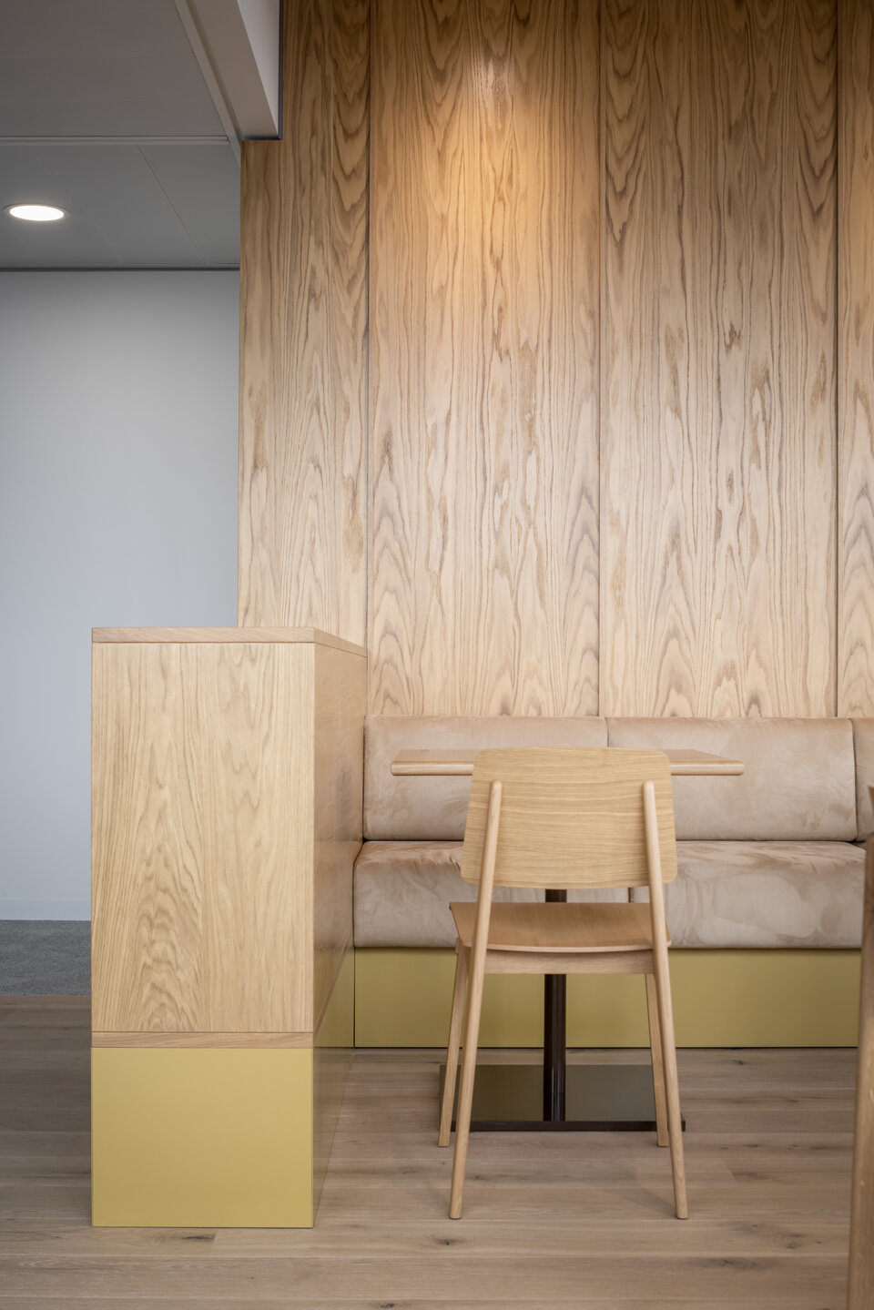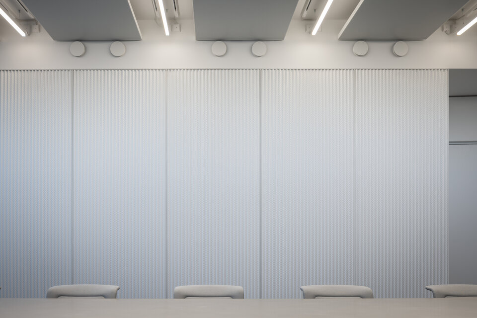 For the tenant fit-out of the Omron office spaces, the Lindner Group, through its Tenant Fit-Out | Design & Build division, undertook essential interior fit-out services and supplied the appropriate products. These included bespoke wall and ceiling coverings as well as the frameless partition wall system Lindner Life Clear. This glass partition not only allows for a transparent room layout but also provides high sound insulation with a rating of Rw 49 dB.
