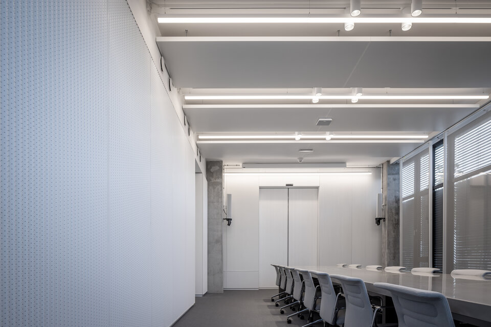 Additional fit-out services included dry construction work, tiling and natural stone cladding, bespoke furniture, and the installation of the LMD-St 214 stretched metal ceiling, which makes a significant contribution to the building's sustainability with its Cradle to Cradle Certified® Gold.