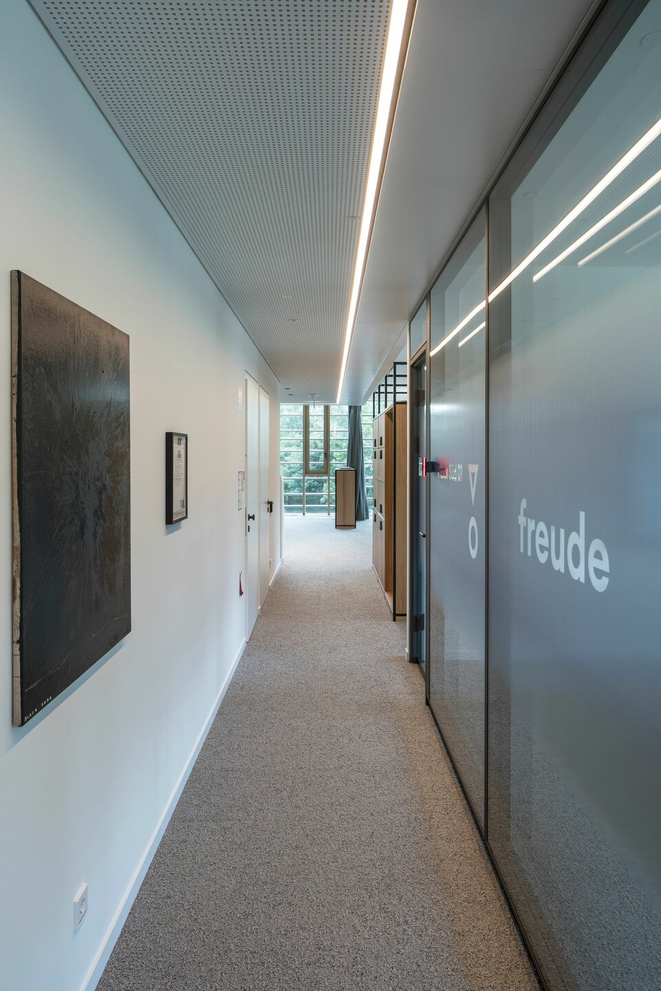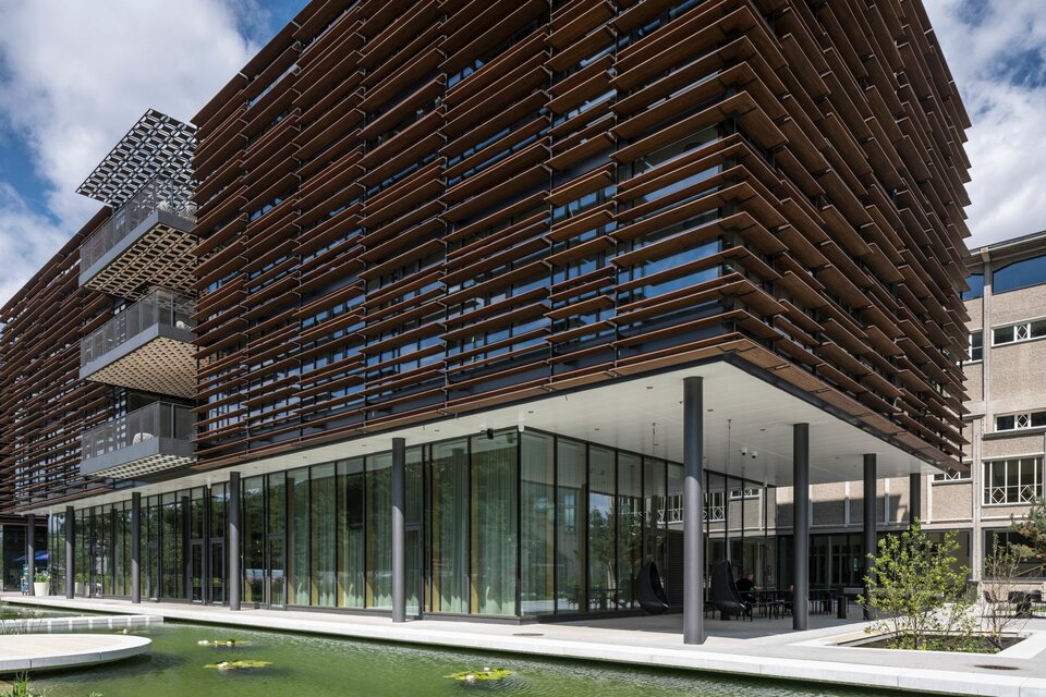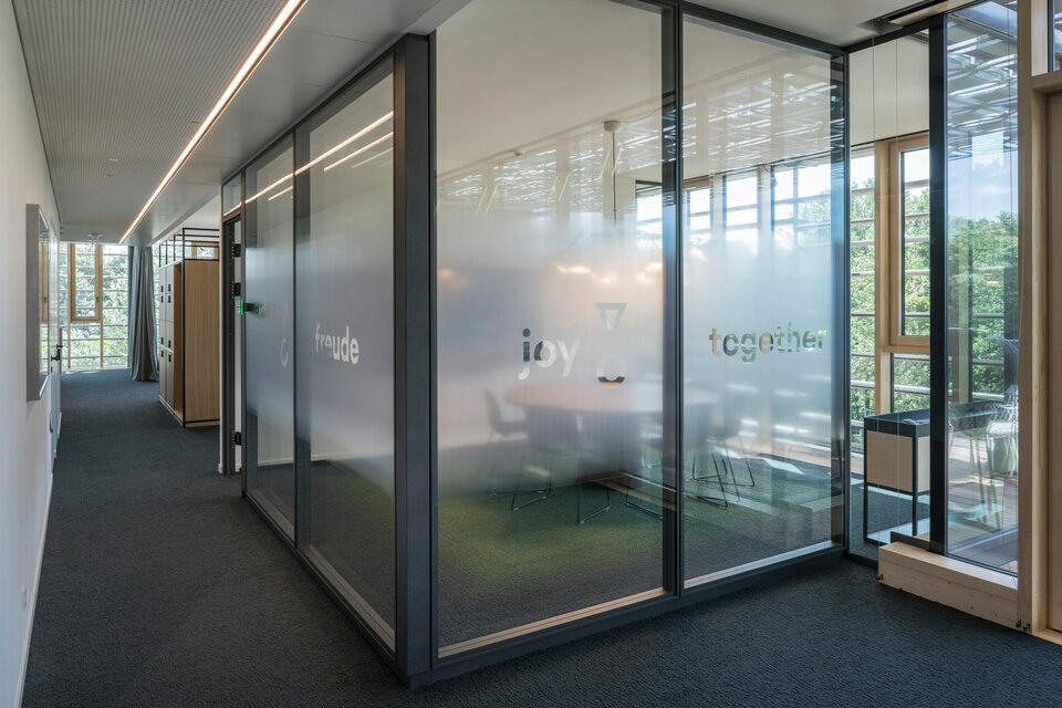 The new building was completed in 2021 and includes enclosed offices as well as numerous open workplaces, project islands, a library and soft meeting areas.