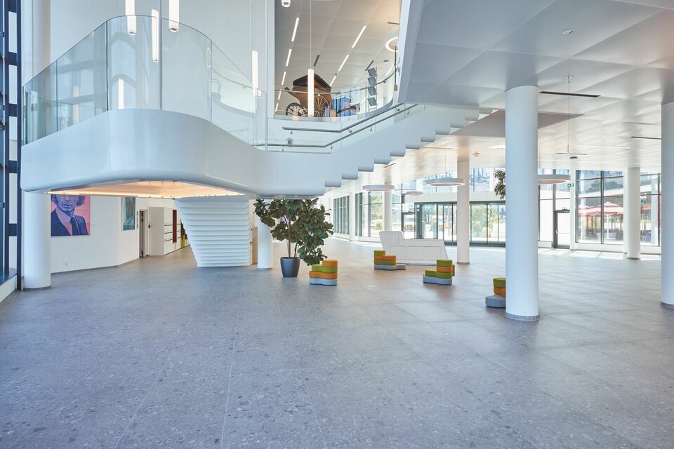 Lindner was involved in the project as a general contractor from 2019 to 2020 and implemented the interior fit-out with dry lining, ceiling and floor products, taking into account the highest energy standards. Low-emission adhesives and boards were used in the installation of the raised floor systems. The ÖGNI (Austrian Sustainable Building Council), cooperation partner of the DGNB, awarded the Office Park 4 with the DGNB platinum Certificate. Furthermore, the project received the ÖGNI Crystal Award for its high socio-cultural and functional quality. In addition to plasterboard partitions and ceilings as well as a wide variety of floor coverings, Lindner also supplied and installed heated and chilled post cap ceilings, which guarantee a pleasant feel-good atmosphere.