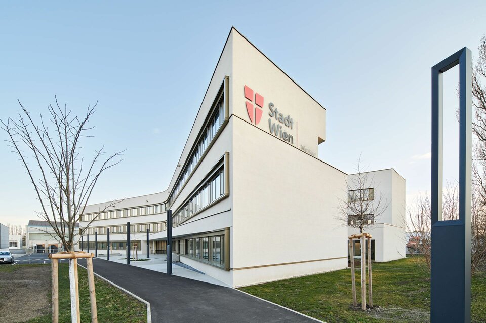 From the new Wien Kanal headquarters, around 240 employees take care of the approximately 2,500 km long sewer system of the City of Vienna. The shape of the new building invites associations with intersecting canals, but is primarily due to the site area and industrial surroundings. The Pichler & Traupmann team of architects deliberately wanted to create a counterpart to the otherwise frontally oriented rows of buildings. In addition, the aim here was to create as much green open space as possible. Furthermore, the X is the optimal building form in terms of visual axes and short distances, as well as flexibility and reversibility of the new working worlds.