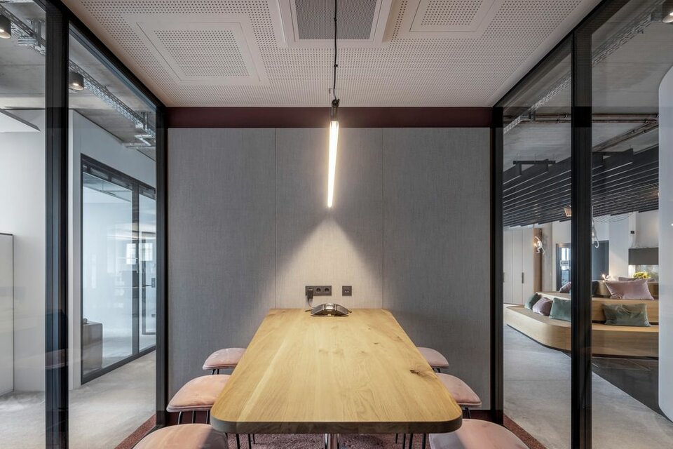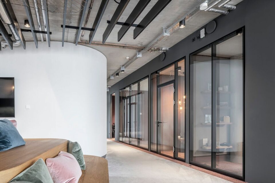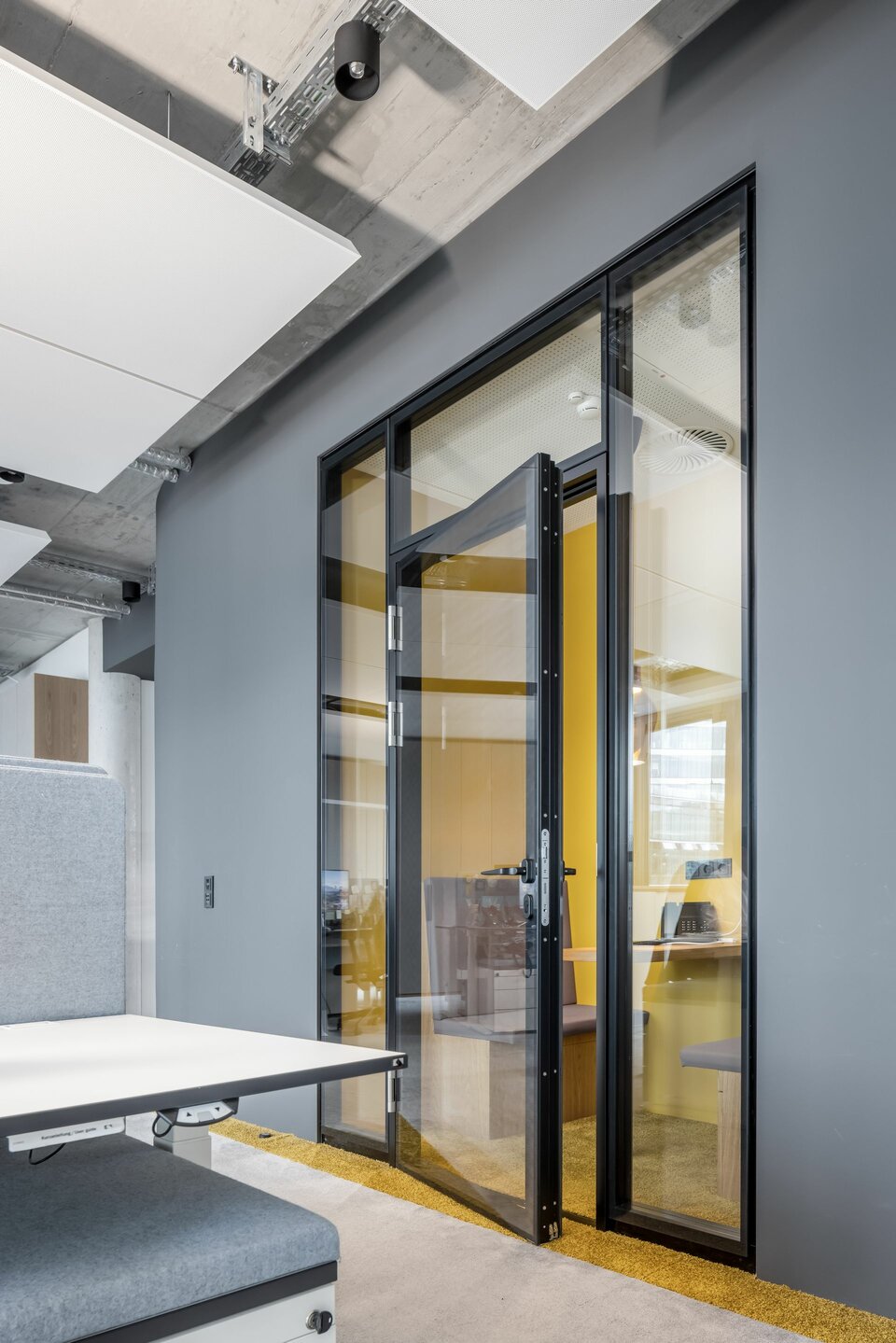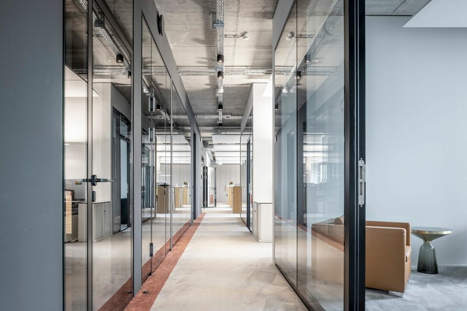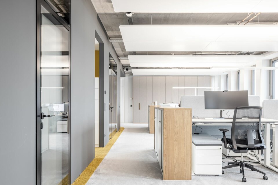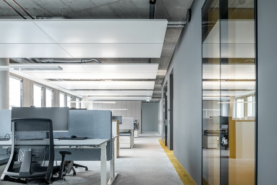 In addition to the NORTEC and CAVOPEX floor systems and the associated floor covering work, the Lindner Life glass partitions and heated and cooled ceilings were used for the interior fit-out.