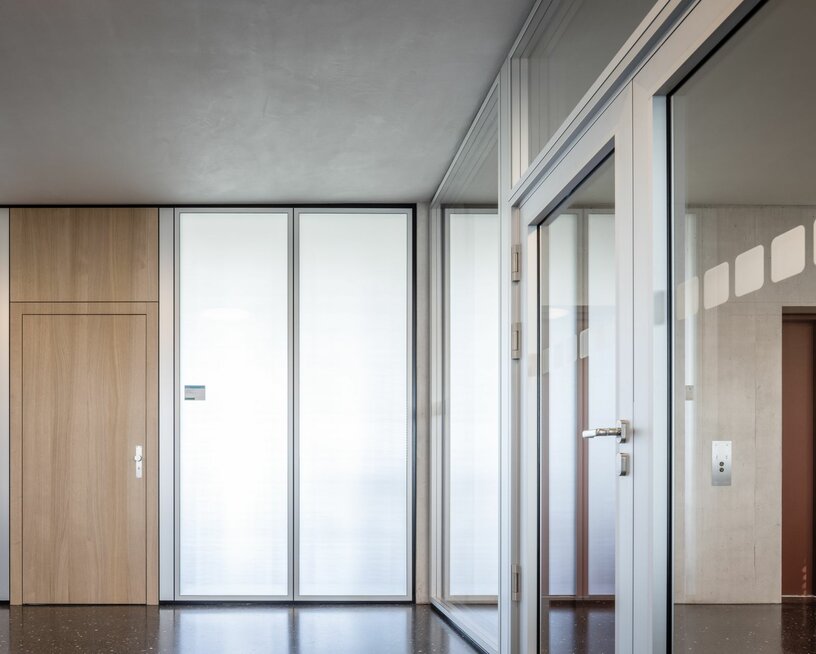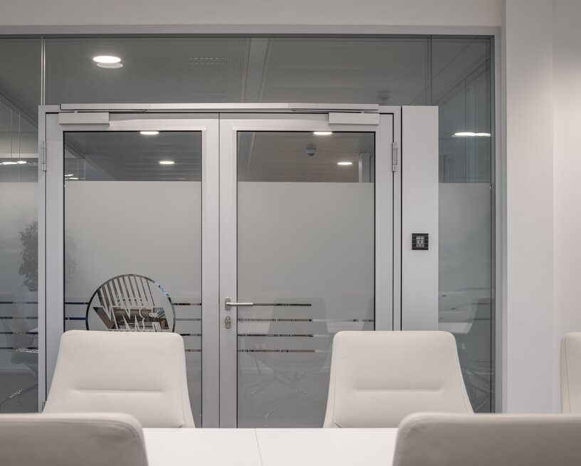 La porte à cadre tubulaire en aluminium offre de nombreuses variantes de finition, idéales pour s'adapter aux différents aménagements de l'espace. Vous avez le choix entre l'anodisation et le revêtement par poudre pour les profilés et entre le verre transparent et le verre blanc pour le vitrage. Quelle que soit l'option choisie, ATB 42 s'intègre discrètement et avec style dans votre environnement. De plus, elle se combine facilement avec un grand nombre de nos cloisons.