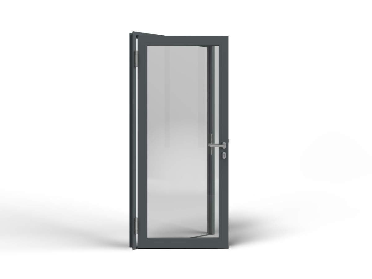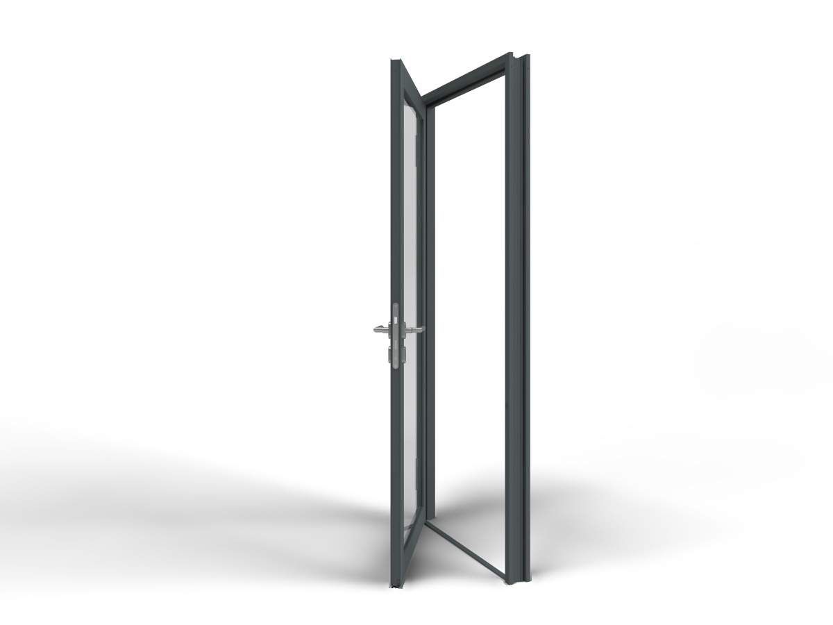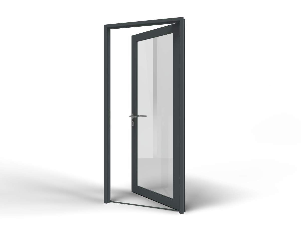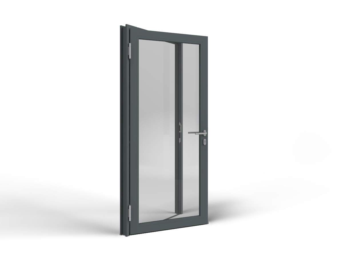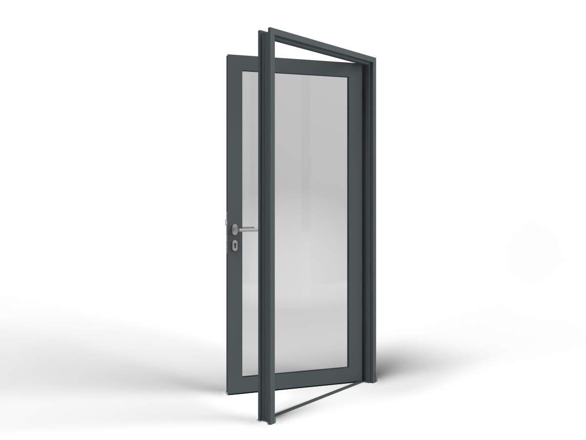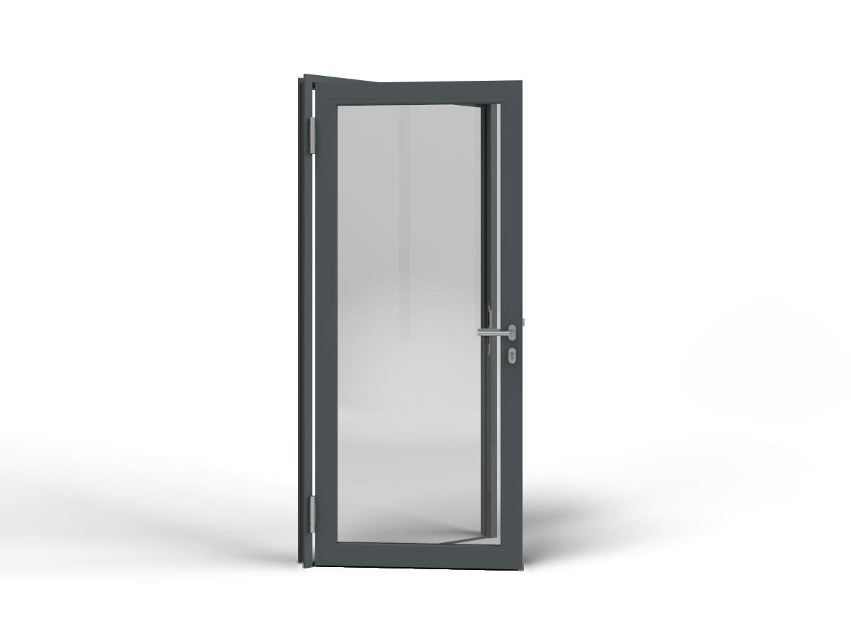 Elle combine un panneau vitré en verre de sécurité avec un cadre en aluminium assemblé en onglet. Cette porte est disponible en double vitrage, à la fois en version à un ou deux vantaux, pour répondre à vos besoins spécifiques.