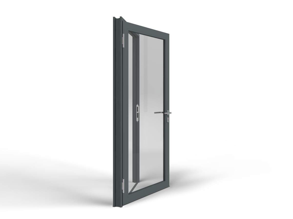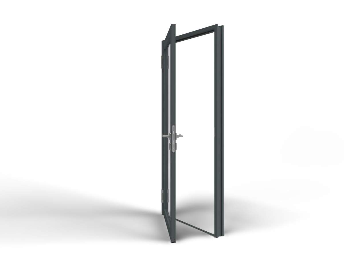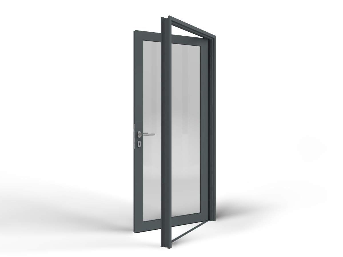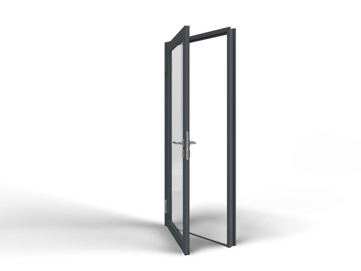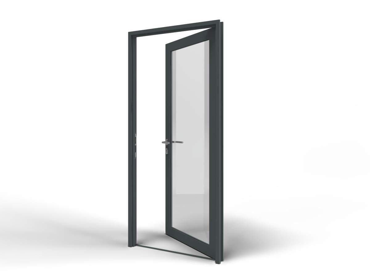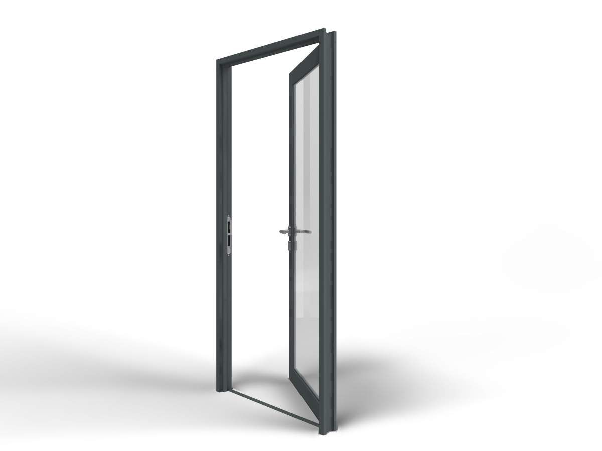 Elle combine un panneau vitré en verre de sécurité avec un cadre en aluminium assemblé en onglet. Cette porte est disponible en double vitrage, à la fois en version à un ou deux vantaux, pour répondre à vos besoins spécifiques.