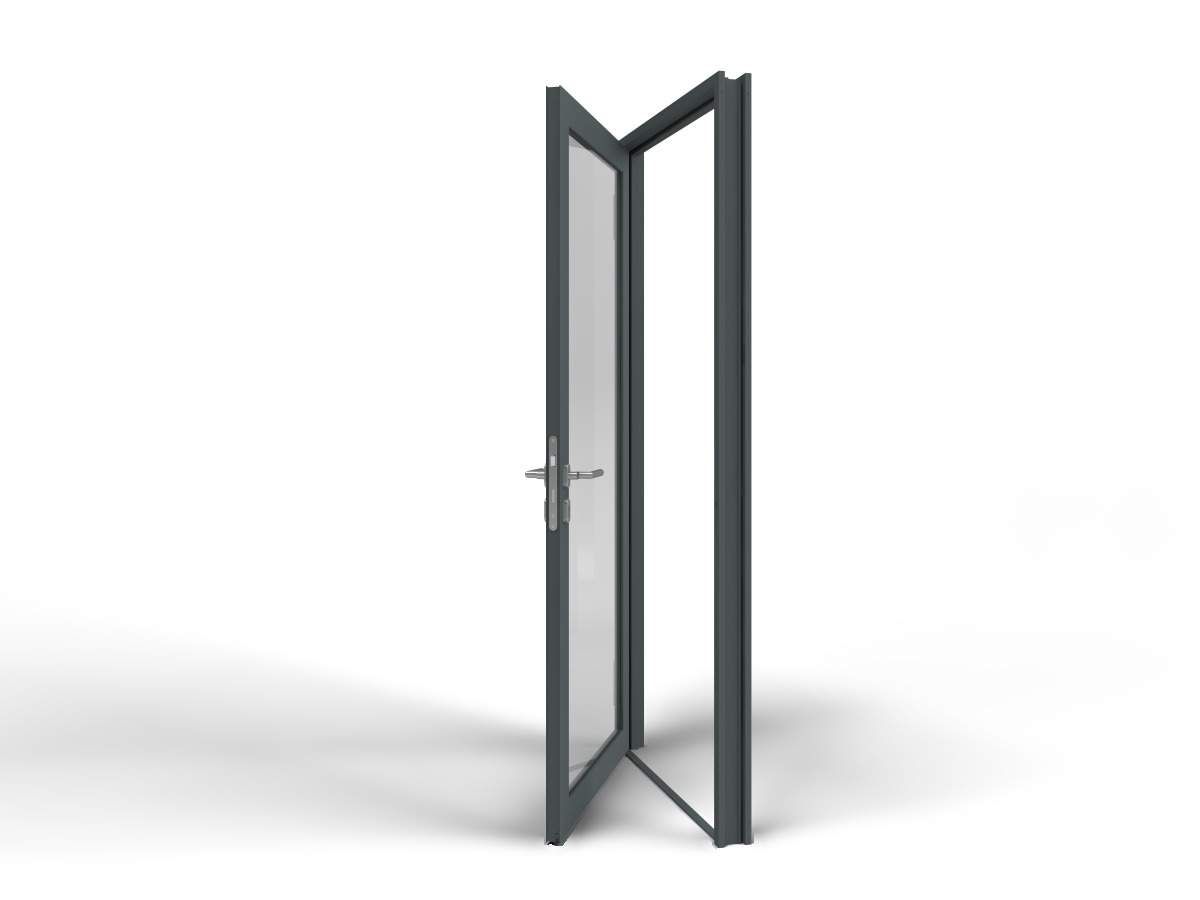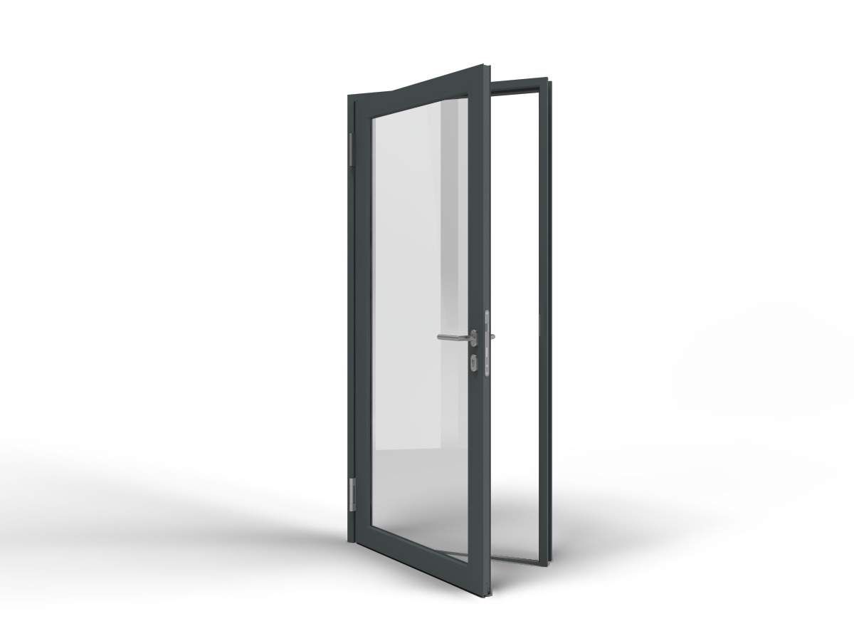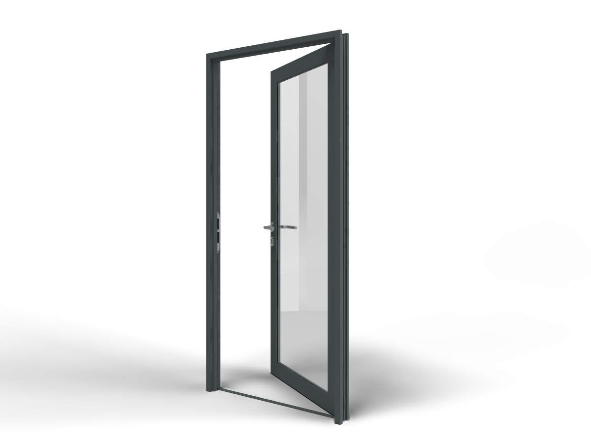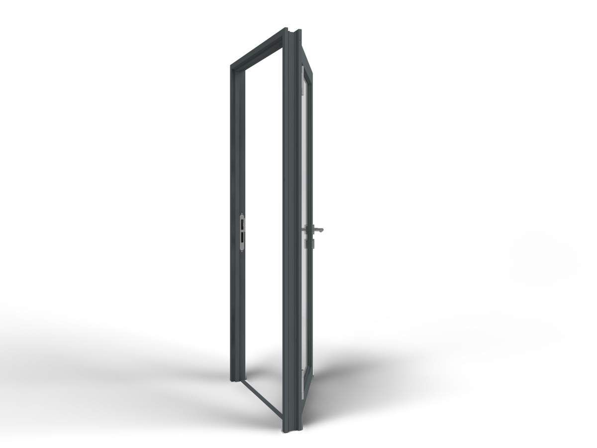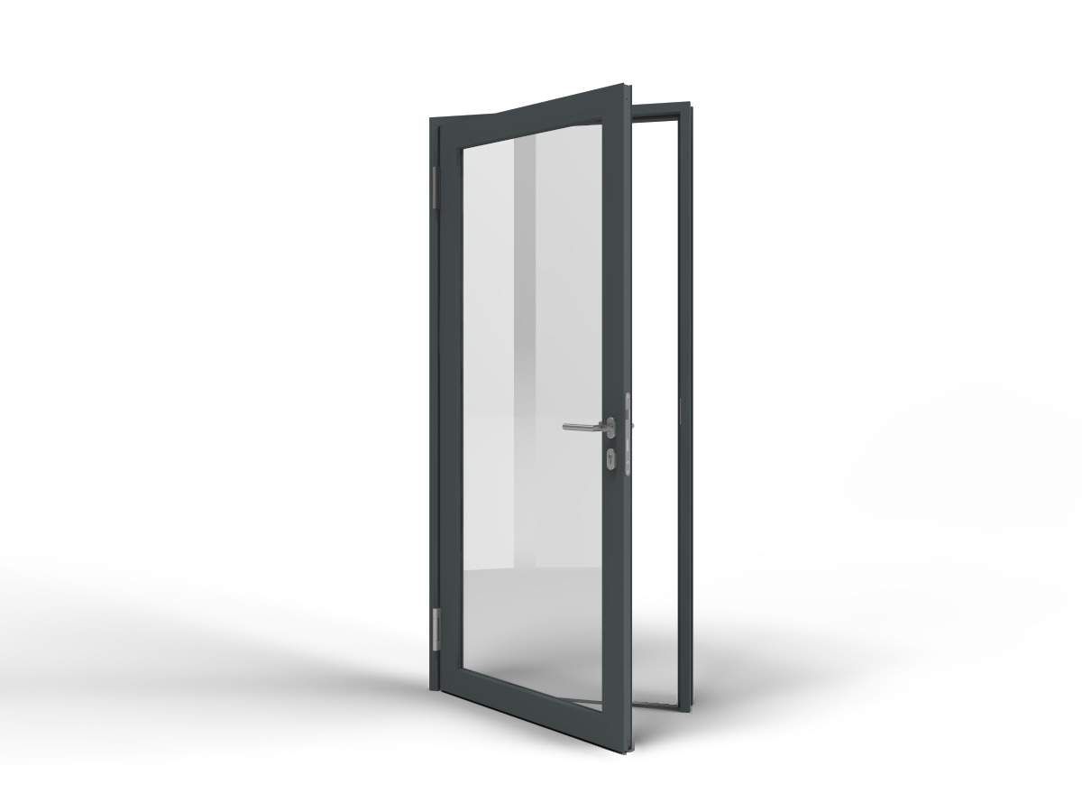 Elle combine un panneau vitré en verre de sécurité avec un cadre en aluminium assemblé en onglet. Cette porte est disponible en double vitrage, à la fois en version à un ou deux vantaux, pour répondre à vos besoins spécifiques.