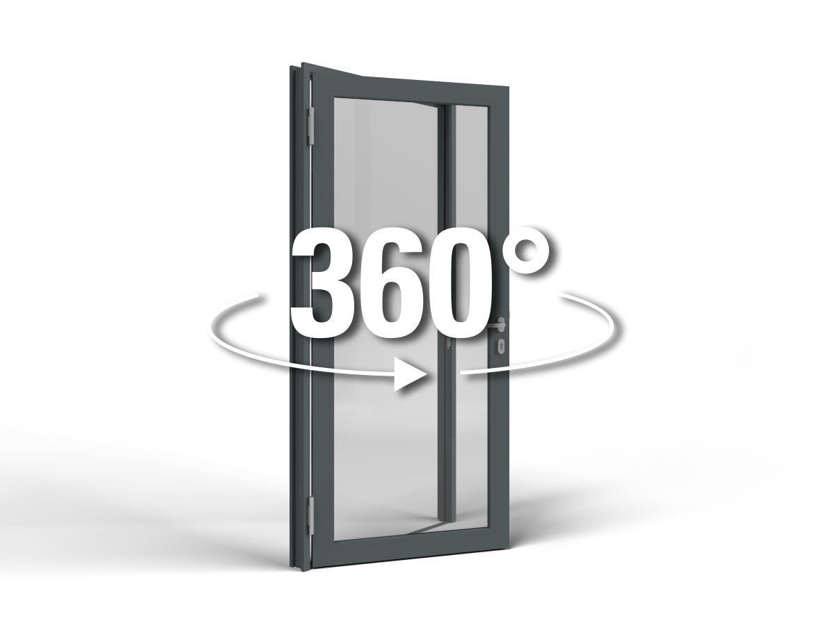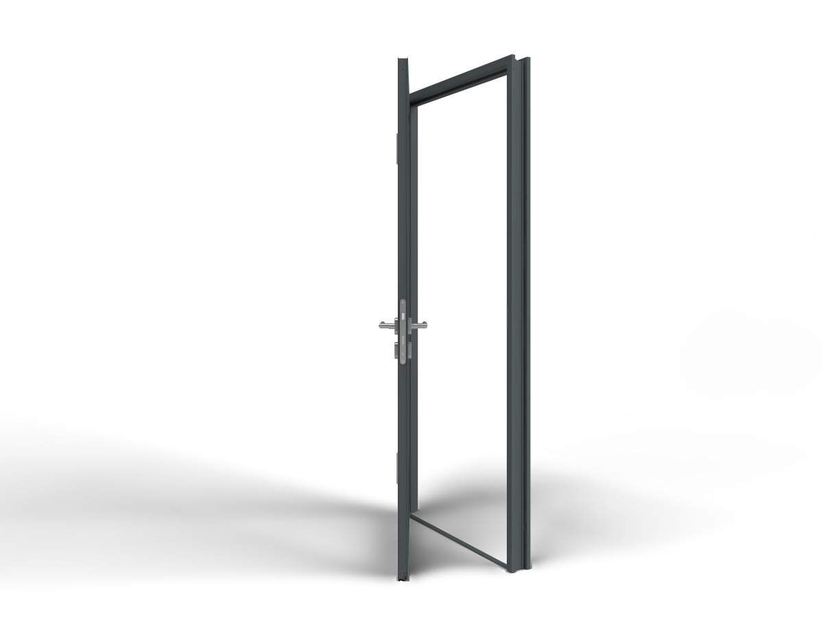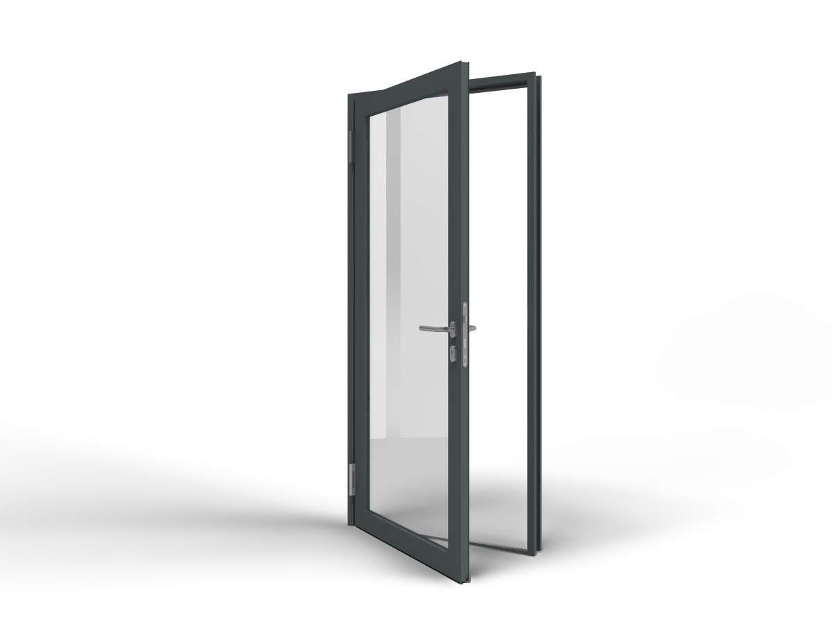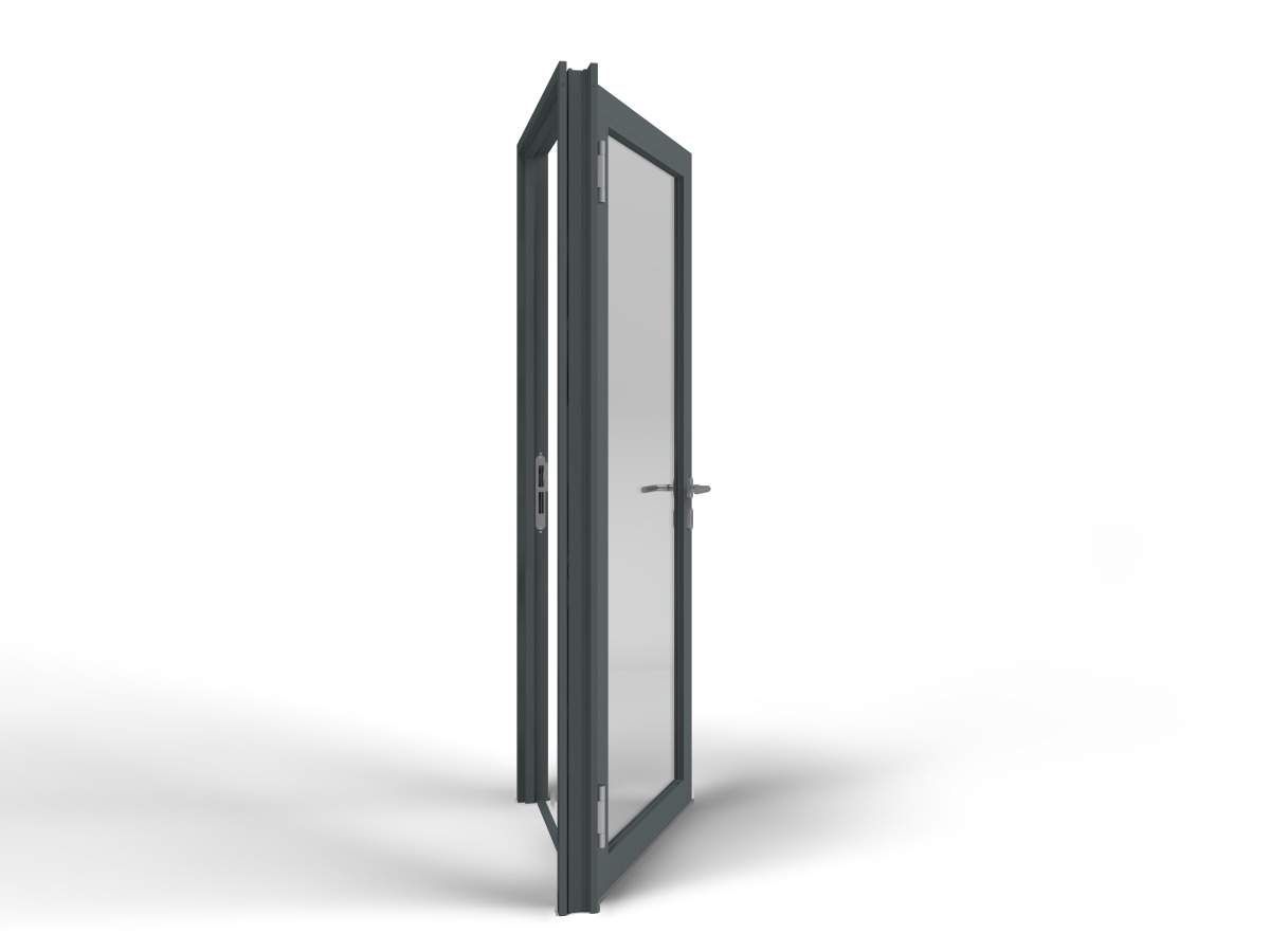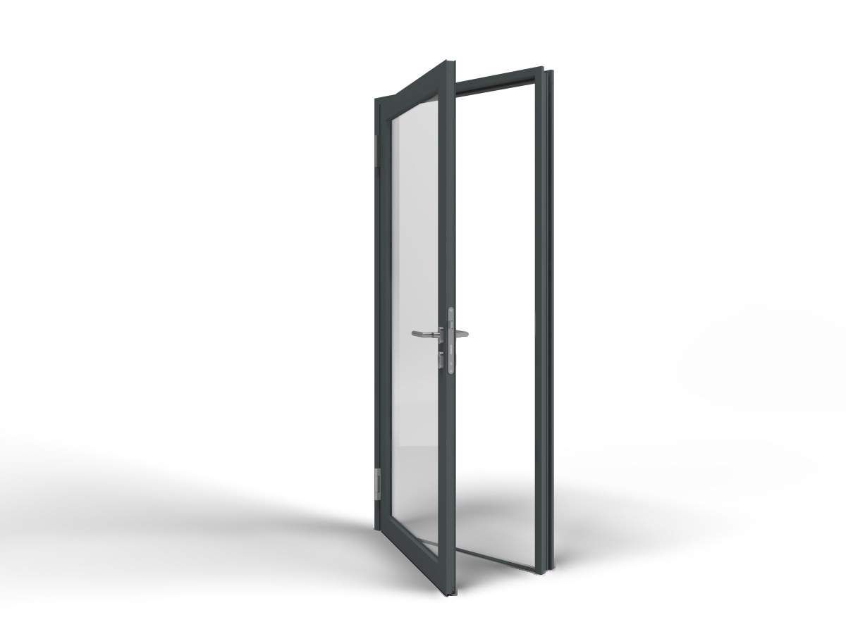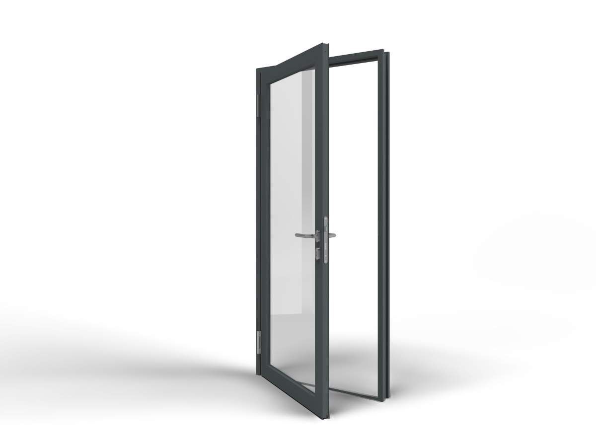 Elle combine un panneau vitré en verre de sécurité avec un cadre en aluminium assemblé en onglet. Cette porte est disponible en double vitrage, à la fois en version à un ou deux vantaux, pour répondre à vos besoins spécifiques.