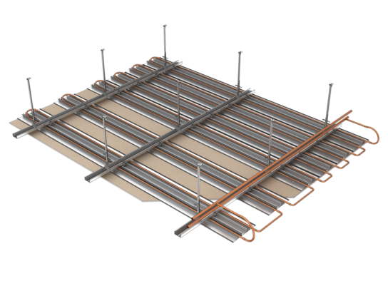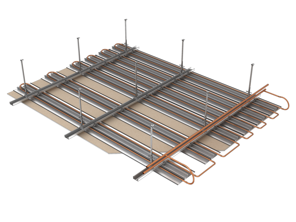 Ce système économique vous permet d'obtenir une surface sans joints - une multitude de revêtements en version lisse ou perforée est disponible. Plafotherm® GK HEKDA®, dont tous les composants sont testés en tant que système, garantit un confort maximal et une ambiance agréable. Le registre fusionne avec l'ossature comme élément constructif et sert comme porteur pour la plaque de plâtre. Avec une densité d'occupation allant jusqu'à 100 %, ce plafond en plaques de plâtre peut évacuer des puissances de rafraîchissement maximales. Les éléments encastrés dans le plafond en plaques de plâtre ne réduisent pratiquement pas la densité d'occupation grâce à la flexibilité maximale de la disposition des registres. Il est également possible de créer des jouées et des formes libres.