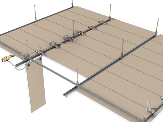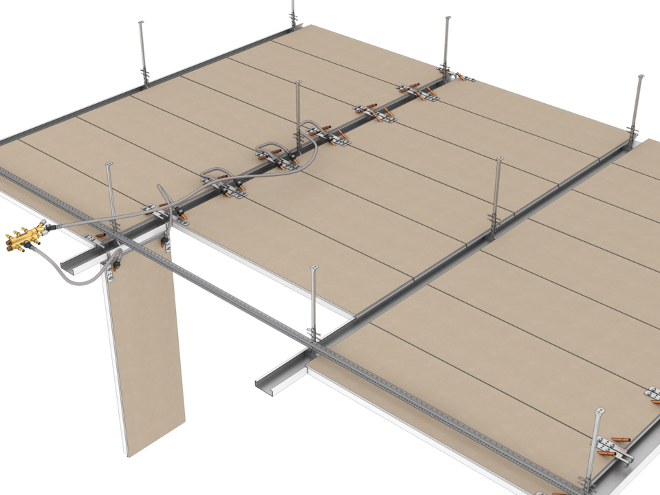 Ce plafond à profilés porteur crée un climat agréable dans vos pièces et est en outre conçu avec une isolation phonique longitudinale. Il est donc parfaitement adapté à la fixation de cloisons et vous offre une grande liberté dans l'aménagement de vos pièces - aucune cloison de plafond supplémentaire n'est nécessaire. Les profilés porteurs linéaires visibles peuvent être utilisés comme éléments de design ou pour des installations. Le système peu encombrant est facile à ouvrir : les panneaux de plafond peuvent être manipulés sans outils. Il est même possible de réaliser des formes de bâtiments rondes ou arrondies. Une combinaison de zones thermiquement actives et inactives est possible.