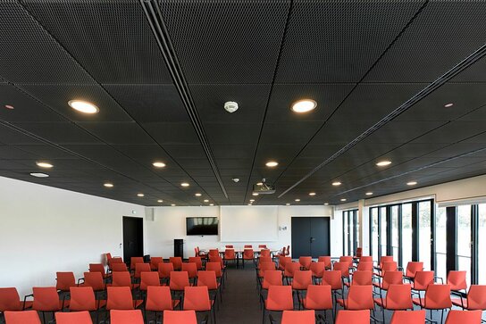 Le caractère particulièrement ouvert du plafond en métal déployé LMD-St 215 est obtenu grâce à des panneaux de plafond sans cadre qui sont accrochés longitudinalement dans des profilés de suspension. Un grand nombre de mailles réalisables et de largeurs de joints possibles vous permettent une liberté de conception. Selon vos souhaits, la cavité du plafond est plus ou moins visible - mais les différents panneaux de plafond peuvent dans tous les cas être retirés sans outils.