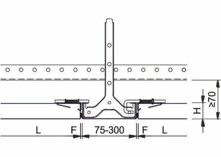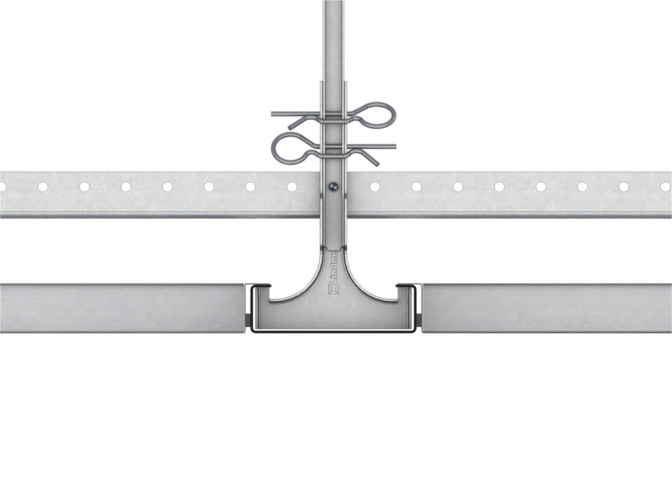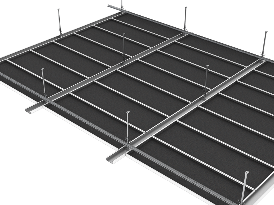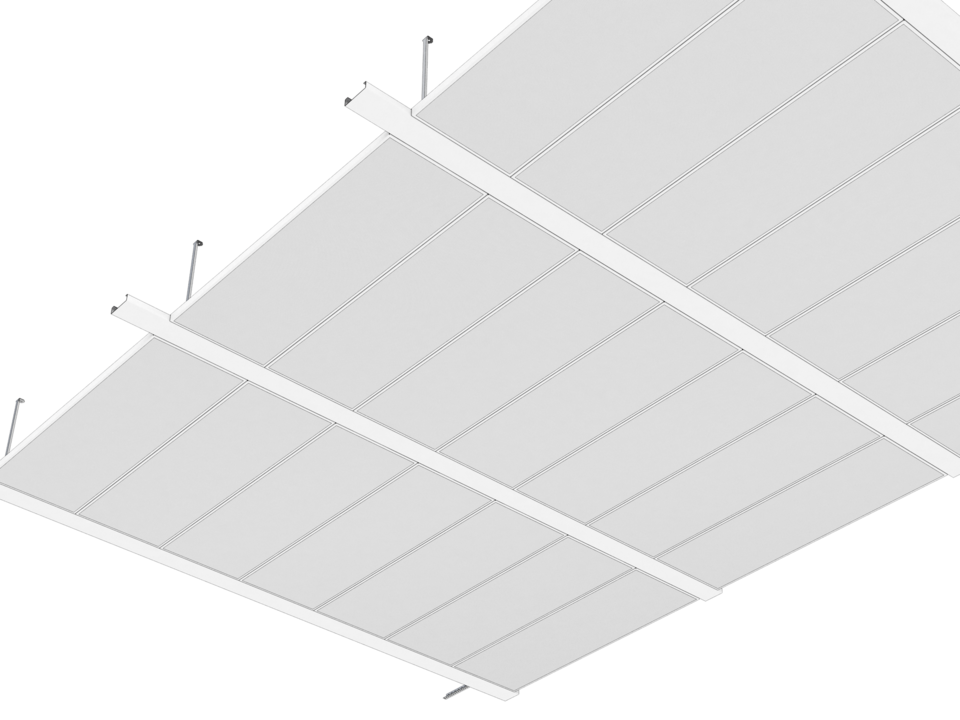 Dans le système LMD-B 100, des profils porteurs linéaires visibles assurent la répartition du plafond. Si nécessaire, des cloisons peuvent être fixées aux profils porteurs, ce qui permet de diviser les pièces individuellement. Les profils marquants peuvent être utilisés pour des installations techniques et être facilement adaptés aux formes des bâtiments grâce à leur disposition radiale. Ce plafond sur profils porteurs est un système de plafond peu encombrant et peu coûteux. Selon les besoins de révision, il existe des panneaux de plafond posés ou rabattables, qui peuvent également être utilisés de manière combinée.