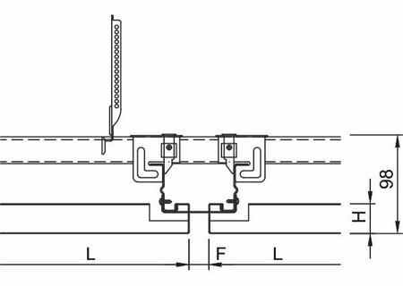 Une ossature cachée et des joints ouverts variables à partir de 10 mm caractérisent ce faux plafond. Les joints ouverts peuvent par exemple être utilisés pour des installations indépendantes de luminaires ou d'éléments encastrés. Ce système vous offre des possibilités de conception individuelles non seulement grâce à l'espacement variable des joints, mais aussi grâce aux formes et aux dimensions des panneaux réalisables de manière flexible. Les panneaux de plafond suspendus peuvent au choix être retirés ou rabattus sans outil, ce qui vous offre une facilité de révision totale.
