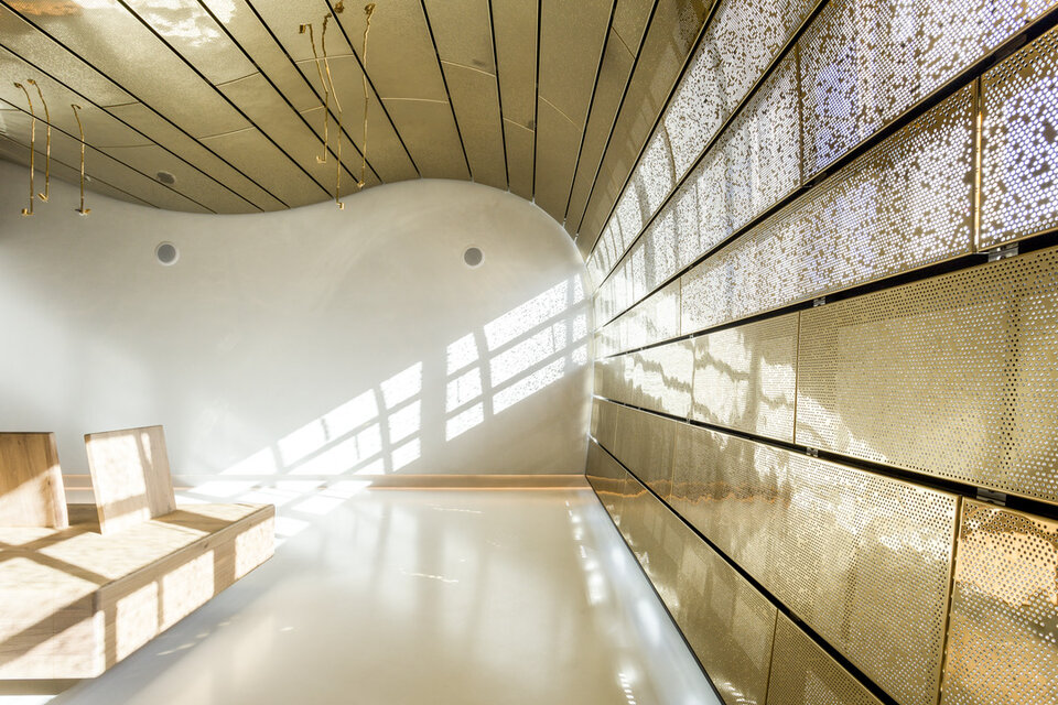 La surface brillante en acier inoxydable martelé confère au plafond métallique un caractère tridimensionnel particulier. Une combinaison de perforations et de poinçonnages, ainsi que de zones mates et brillantes, vous permet de créer des designs personnalisés. La surface brillante réfléchissante crée un reflet fissuré de la pièce, les couleurs et les formes de la pièce se reflétant dans la surface tridimensionnelle.