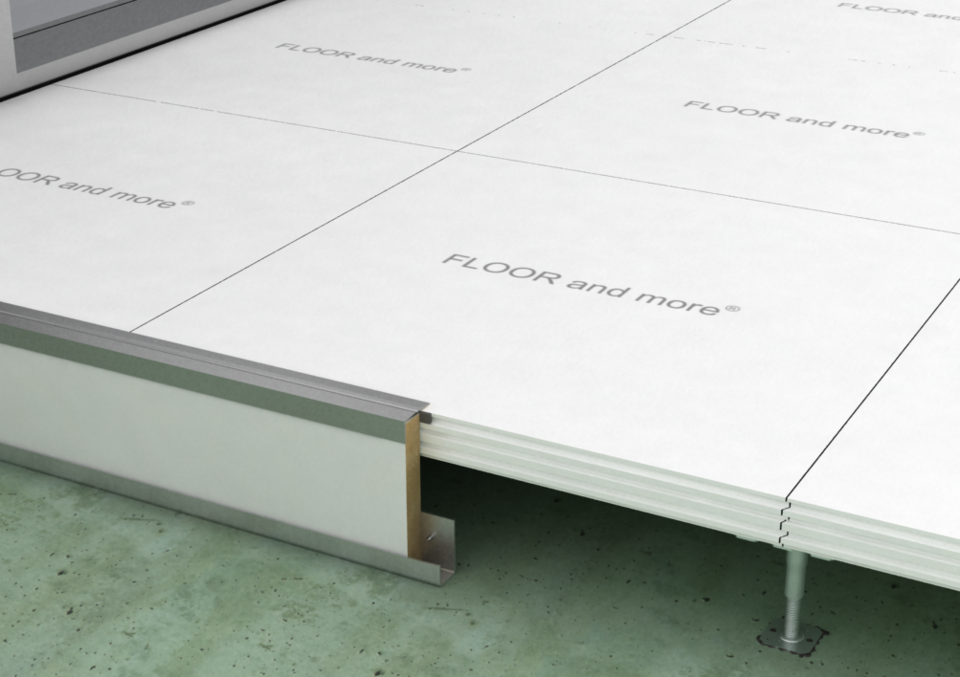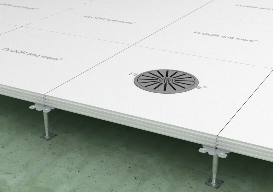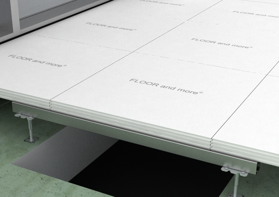Le système de plancher creux sec FLOOR and more® comfort garantit un climat ambiant agréable grâce à son système intelligent de chauffage et de refroidissement. Les rainures pré-fraisées sur la face supérieure pour accueillir les conduites de chauffage et de refroidissement sont comblées avec un matériau de remplissage après le montage.