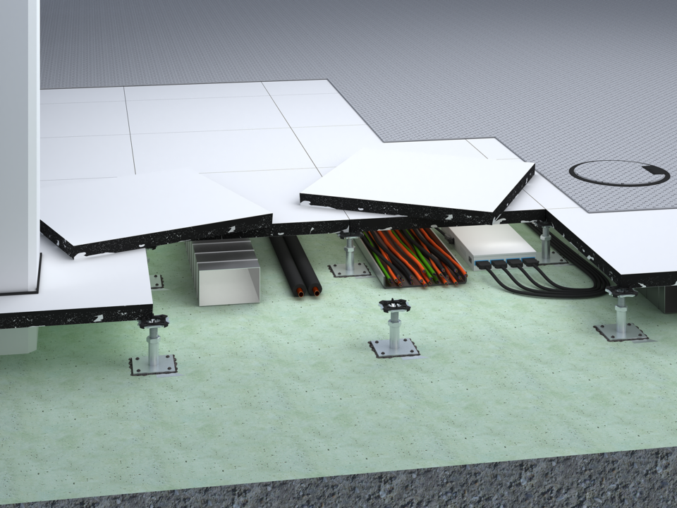 Grâce à ses excellentes propriétés techniques et physiques, le faux-plancher LOOP est le produit idéal pour presque toutes les applications. Les dalles de faux-plancher traitées sont composées de sulfate de calcium renforcé de fibres et sont recouvertes de tôle d'acier sur leur face inférieure. Les dalles sont pourvues sur tout leur pourtour d'une protection d'angle d'origine contre les chocs et l'humidité. La sous-construction, qui crée l'espace nécessaire aux installations, est composée de supports en acier réglables en hauteur avec protection anticorrosion de notre propre production et de plaquettes d'appui pour l'isolation acoustique.