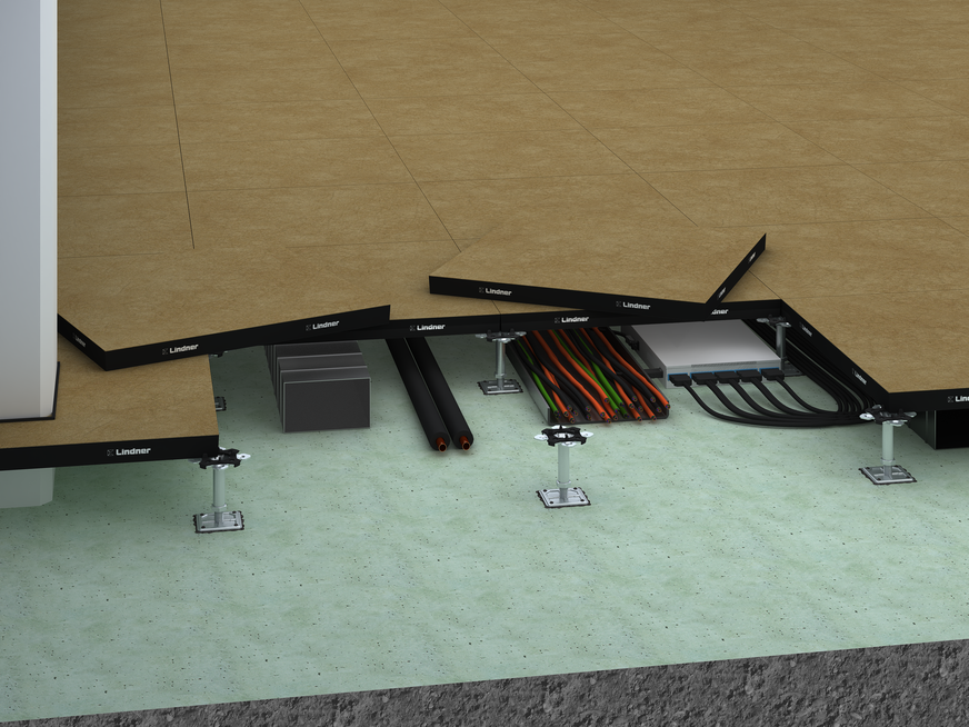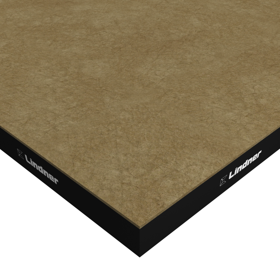 La couche supérieure en fibre de cuir de haute qualité est appliquée en usine sous forme de dalles sur nos panneaux de faux-plancher et est disponible en différentes couleurs et motifs. Afin de protéger les bords en cuir, une protection de couleur assortie est appliquée sur la couche supérieure jusqu'à la surface.
